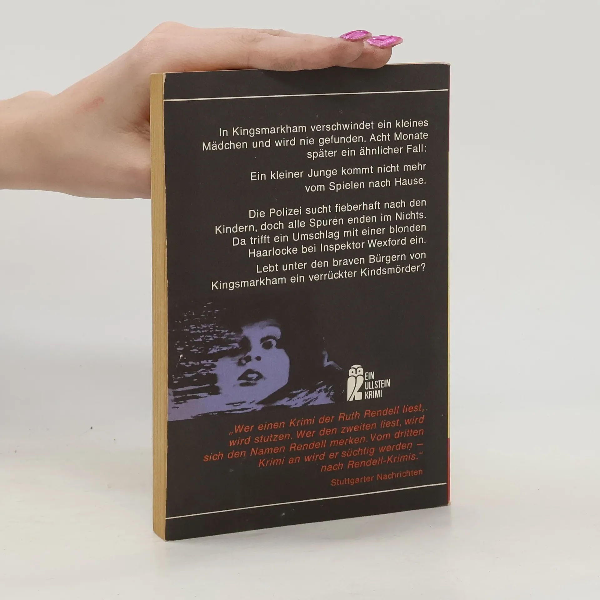 Für den Chefreporter des 'Courier' gilt Kingsmarkham als ausgesprochen geruhsamer Altersitz: keine aufregenden Neuigkeiten, keine Skandale, keine spektakulären Verbrechen. Doch dann verschwinden innerhalb kurzer Zeit zwei Kinder. Zuerst kommt Stella Rivers vom Reitunterricht nicht mehr nach Hause; dann erstattet die Mutter von John Lawrence Vermißtenanzeige: Der Kleine scheint wie vom Erdboden verschluckt. Nachdem die Suchaktionen erfolglos bleiben und auch keine Lösegeldforderungen bei den Eltern eingehen, rechnet die Polizei mit dem Schlimmsten. Die Ahnungen bestätigen sich, als Inspector Wexford einen Brief mit der blonden Locke des vermißten Jungen erhält. Er muß befürchten, daß unter den braven Bürgern von Kingsmarkham ein verrückter Kindesmörder ist, der vielleicht schon auf das nächste Opfer wartet...