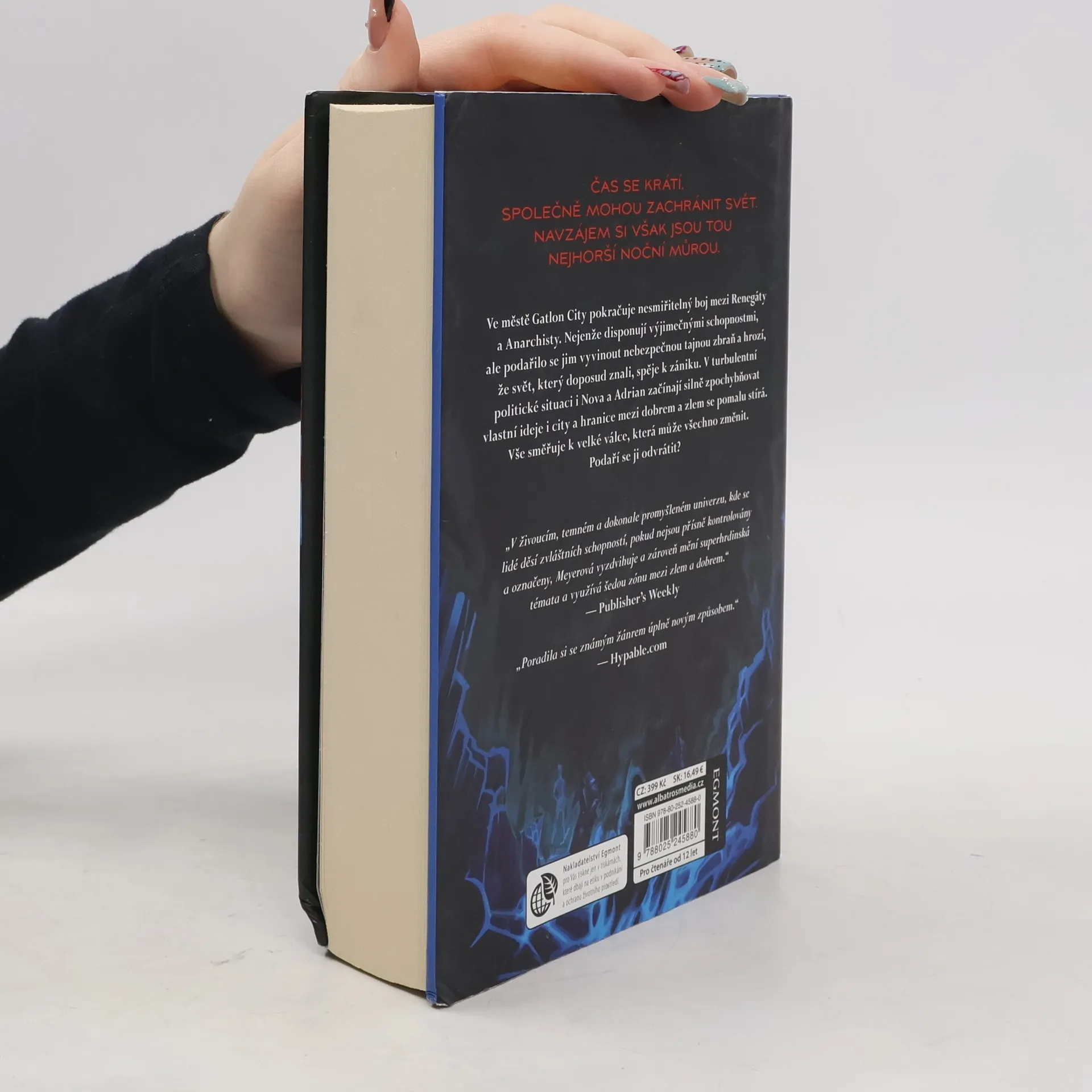 Pokračování superhrdinské trilogie Renegáti od oblíbené autorky. Ve městě Galton City pokračuje nesmiřitelný boj mezi Renegáty a Anarchisty. Nejenže disponují výjimečnými schopnostmi, ale podařilo se jim vyvinout nebezpečnou tajnou zbraň a hrozí, že svět, který doposud znali, spěje k zániku. V turbulentní politické situaci i Nova a Adrian začínají silně zpochybňovat vlastní ideje i city a hranice mezi dobrem a zlem se pomalu stírá. Vše směruje k velké válce, která může všechno změnit. Podaří se ji odvrátit?