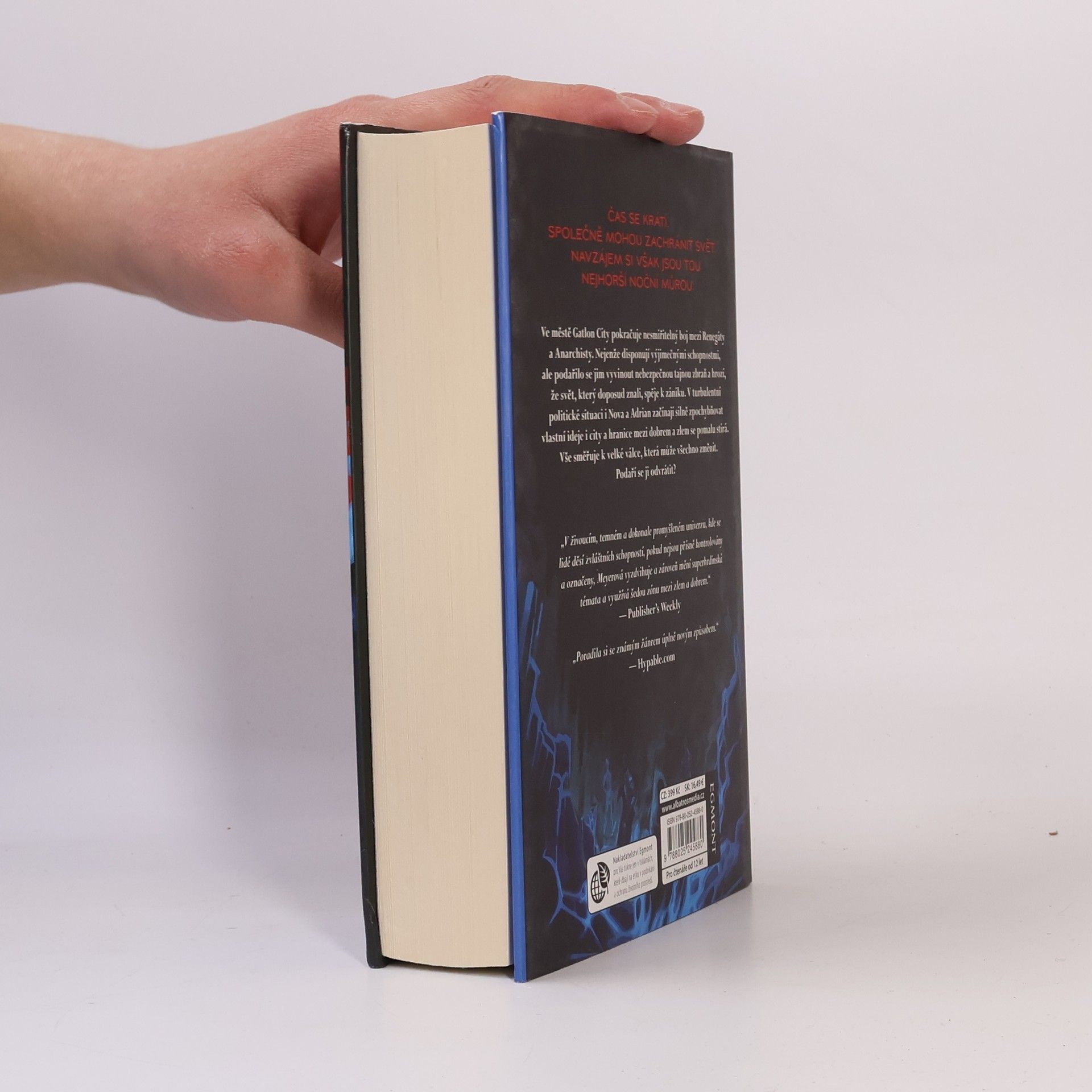 Pokračování superhrdinské trilogie Renegáti od oblíbené autorky. Ve městě Galton City pokračuje nesmiřitelný boj mezi Renegáty a Anarchisty. Nejenže disponují výjimečnými schopnostmi, ale podařilo se jim vyvinout nebezpečnou tajnou zbraň a hrozí, že svět, který doposud znali, spěje k zániku. V turbulentní politické situaci i Nova a Adrian začínají silně zpochybňovat vlastní ideje i city a hranice mezi dobrem a zlem se pomalu stírá. Vše směruje k velké válce, která může všechno změnit. Podaří se ji odvrátit?