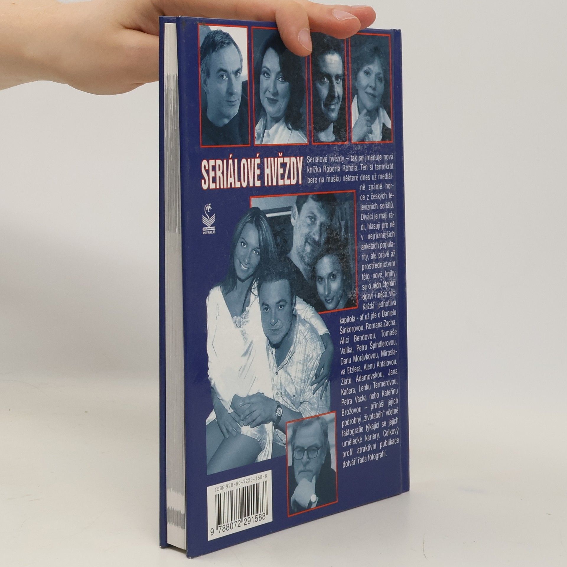 Seriálové hvězdy - tak se jmenuje nová knížka Roberta Rohála. Ten si tentokrát bere na mušku některé dnes už mediálně známé herce z českých televizních seriálů. Diváci je mají rádi, hlasují pro ně v nejrůznějších anketách popularity, ale právě až prostřednictvím této nové knihy se o nich čtenáři dozví i něco víc. Každá jednotlivá kapitola - ať už jde o Danielu Šinkorovou, Romana Zacha, Danu Morávkovou, Alici Bendovou, Tomáše Valíka, Petru Špindlerovou, Miroslava Etzlera, Alenu Antalovou, Zlatu Adamovskou, Jana Kačera, Lenku Termerovou, Petra Vacka nebo Kateřinu Brožovou - přináší jejich podrobný "životaběh" včetně faktografie týkající se jejich umělecké kariéry. Celkový profil atraktivní publikace dotváří řada fotografií.
