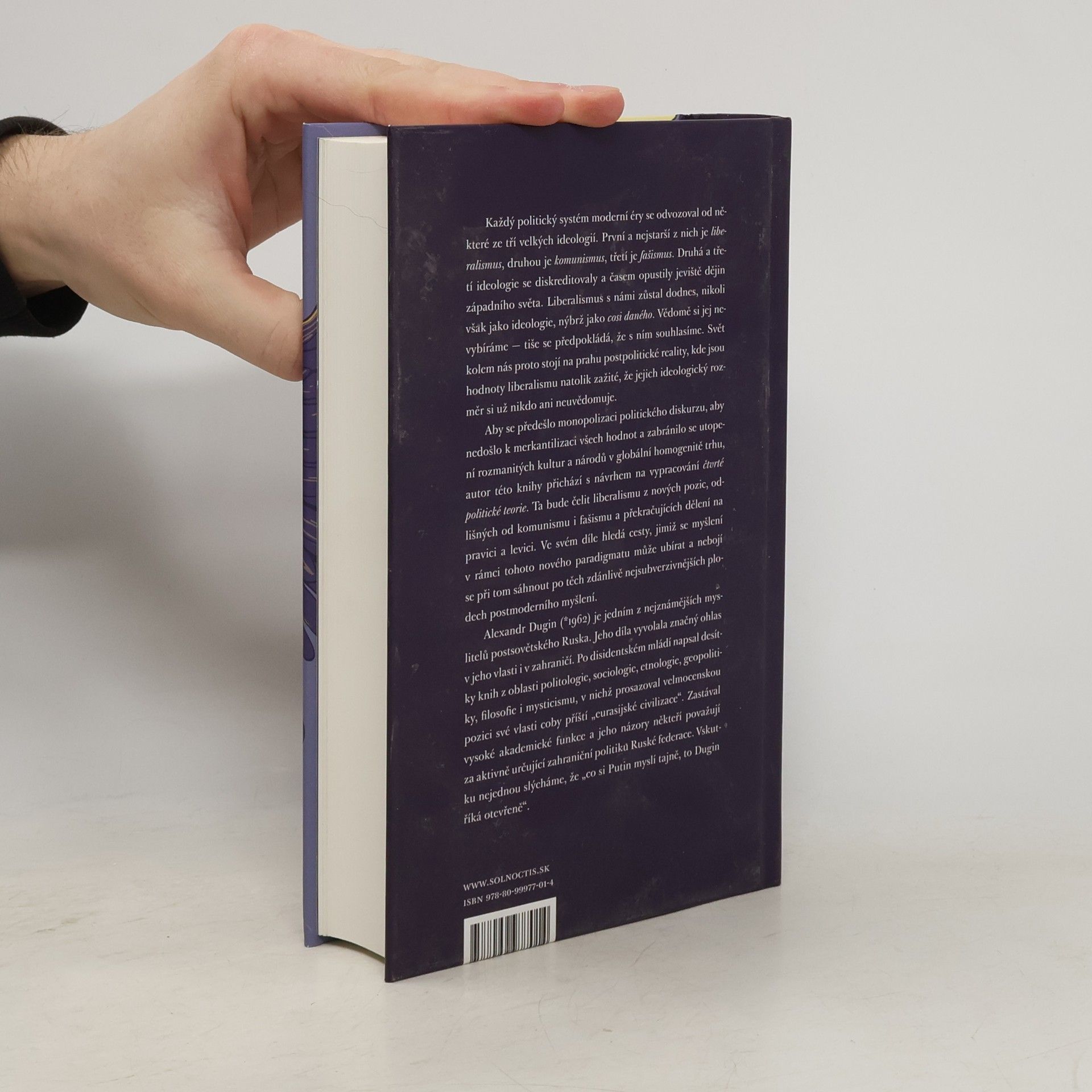 Každý politický systém moderní éry se odvozoval od některé ze tří velkých ideologií. První a nejstarší z těchto ideologií je liberalismus, druhou je komunismus, třetí je fašismus. Druhá a třetí ideologie se diskreditovaly a časem opustily jeviště dějin západního světa. Liberalismus s námi zůstal dodnes, nikoli však jako ideologie, nýbrž jako cosi daného. Vědomě si jej nevybíráme: tiše se předpokládá, že s ním souhlasíme. Svět kolem nás proto stojí na prahu postpolitické reality, kde jsou hodnoty liberalismu natolik zažité, že jejich ideologický rozměr si už nikdo ani neuvědomuje. Aby se předešlo monopolizaci politického diskurzu, aby nedošlo k merkantilizaci všech hodnot a zabránilo se utopení rozmanitých kultur a národů v globální homogenitě trhu, autor této knihy přichází s návrhem na vypracování čtvrté politické teorie. Ta bude čelit liberalismu z nových pozic, odlišných od komunismu i fašismu a překračujících dělení na pravici a levici. Ve svém díle hledá cesty, jimiž se myšlení v rámci tohoto nového paradigmatu může ubírat a nebojí se při tom sáhnout po těch zdánlivě nejsubverzivnějších plodech postmoderního myšlení.