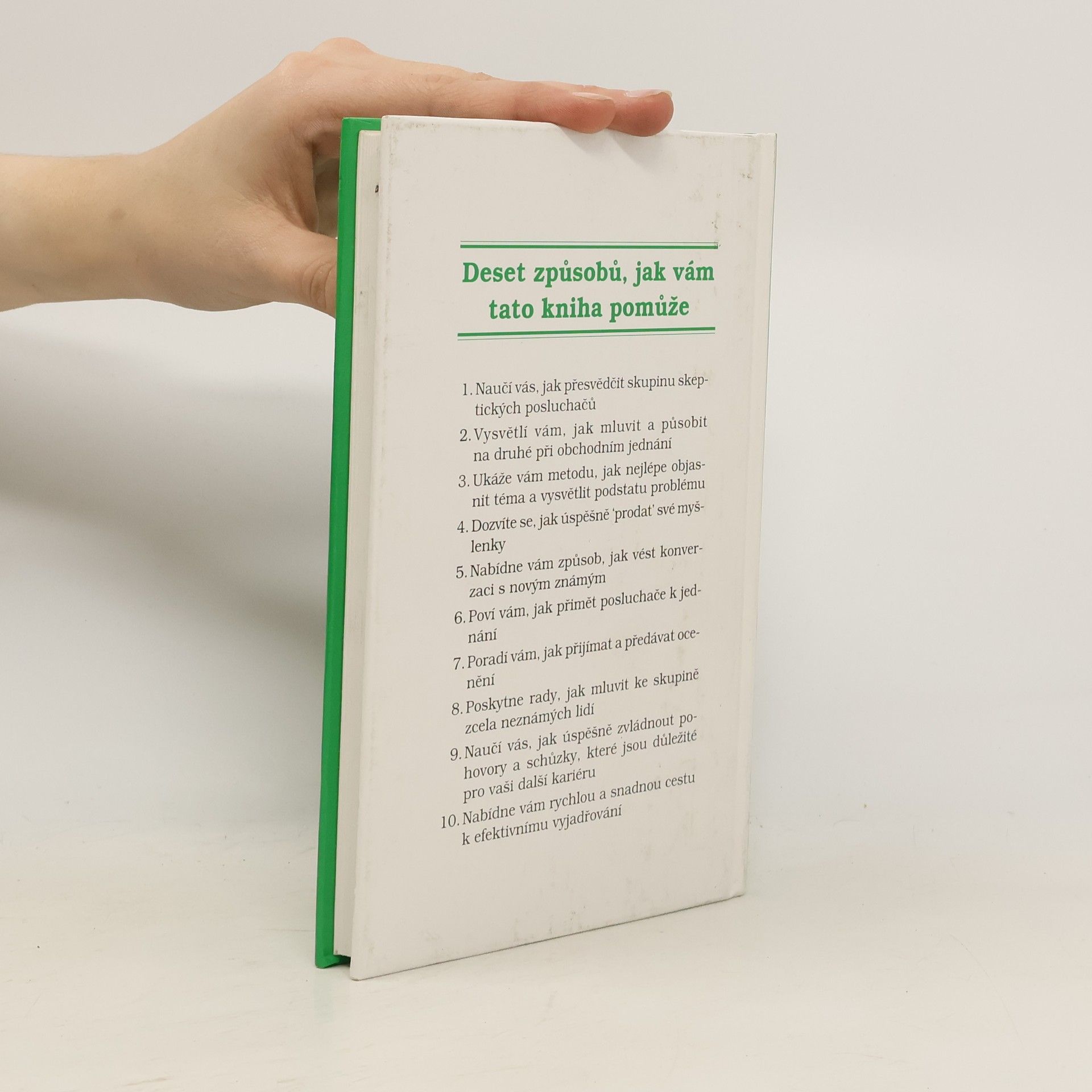 První vydání revidované a plně autorizované verze. Rychlá a snadná cesta k efektivnímu vyjadřování. Průkopník osobnostního rozvoje Dale Carnegie nepřistupoval k mluvení na veřejnosti jako k nějakému delikátnímu umění, vyžadujícímu zvláštní talent a nadání. Schopnost komunikovatviděl jako druh dovednosti, kterou si může průměrně inteligentní člověk osvojit, pokud sám chce. Efektivní pomůckou mu může být právě tato příručka, která se stala vedle dnes již legendární knihy Jak získávat přátele a působit na druhé jeho dalším bestsellerem, byla přeložena do mnoha jazyků a dočkala se velkého počtu vydání. Obsahuje srozumitelná pravidla týkající se celé šíře komunikace – od přípravy efektivních a účinných promluv, až po improvizovaná vystoupení. Pravidla se dají ihned použít v praxi a čas jim neubral na platnosti.