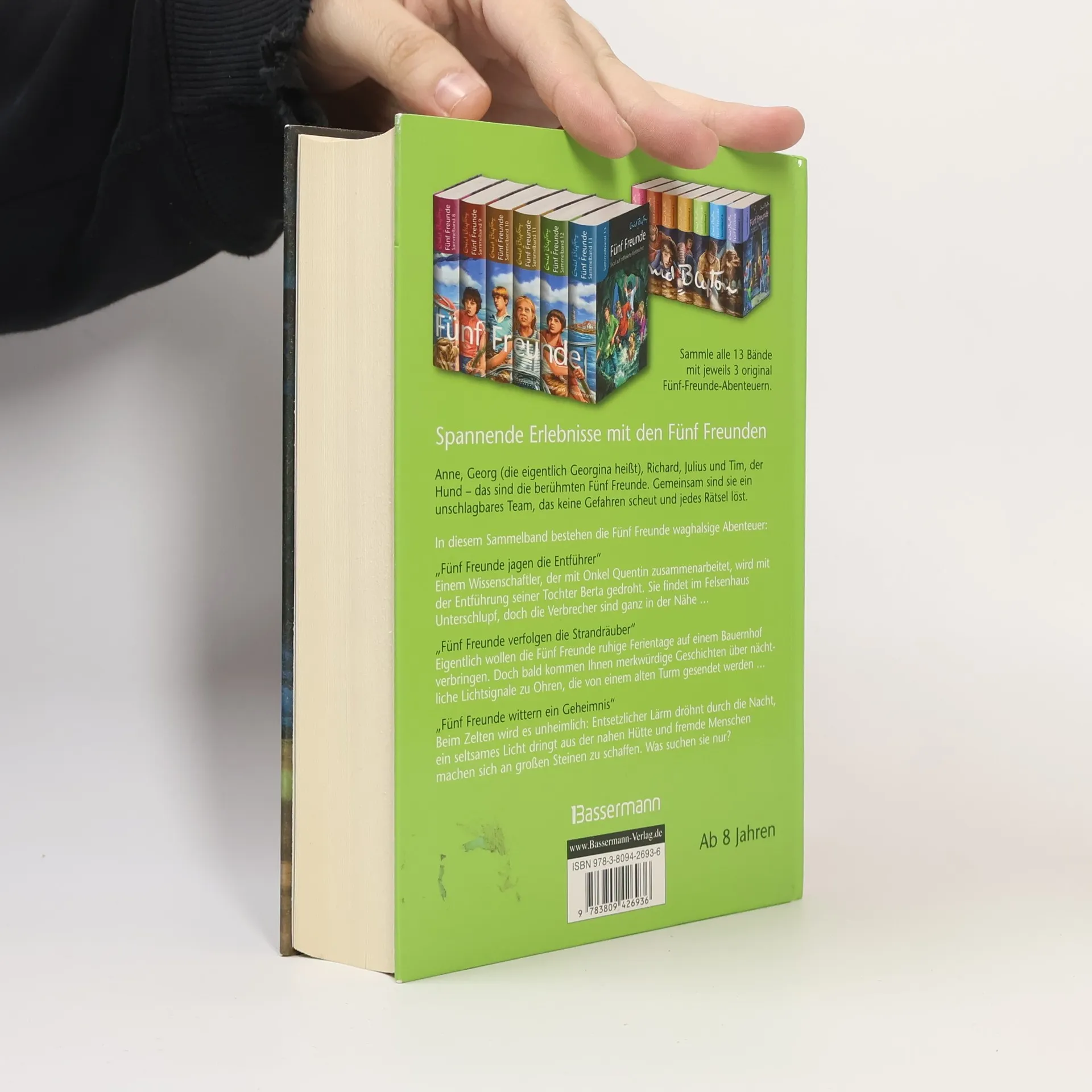 - Fünf Freunde jagen die Entführer - Fünf Freunde verfolgen die Strandräuber - Fünf Freunde wittern ein Geheimnis - \"Fünf Freunde jagen die Entführer\" Einem Wissenschaftler, der mit Onkel Quentin zusammenarbeitet, wird mit der Entführung seiner Tochter Berta gedroht. Sie findet im Felsenhaus Unterschlupf, doch die Verbrecher sind ganz in der Nähe ... - \"Fünf Freunde verfolgen die Strandräuber\" Eigenlich wollen die Fünf Freunde ein paar ruhige Ferientage auf dem Bauernhof verbringen. Doch bald kommen Ihnen merkwürdige Geschichten über nächtliche Lichtsignale zu Ohrne, die von einem alten Turm gesendet werden ... - \"Fünf Freunde wittern ein Geheimnis\" Beim Zelten wird es unheimlich: Entsetzlicher Lärm dröhnt durch die Nacht, ein seltsames Licht dringt aus der nahen Hütte und fremde Menschen machen sich an großen Steinen zu schaffen. Was suchen sie nur?