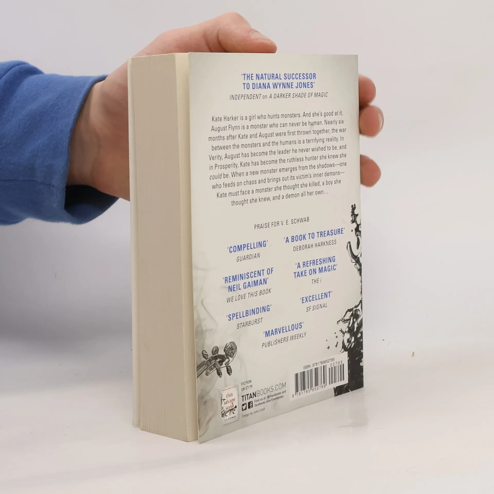 Kate Harker is a girl who isn't afraid of the dark. She's a girl who hunts monsters. And she's good at it. August Flynn is a monster who can never be human, no matter how much he once yearned for it. He's a monster with a part to play. And he will play it, no matter the cost. Nearly six months after Kate and August were first thrown together, the war between the monsters and the humans is terrifying reality. In Verity, August has become the leader he never wished to be, and in Prosperity, Kate has become the ruthless hunter she knew she could be. When a new monster emerges from the shadows one who feeds on chaos and brings out its victim's inner demons it lures Kate home, where she finds more than she bargained for.