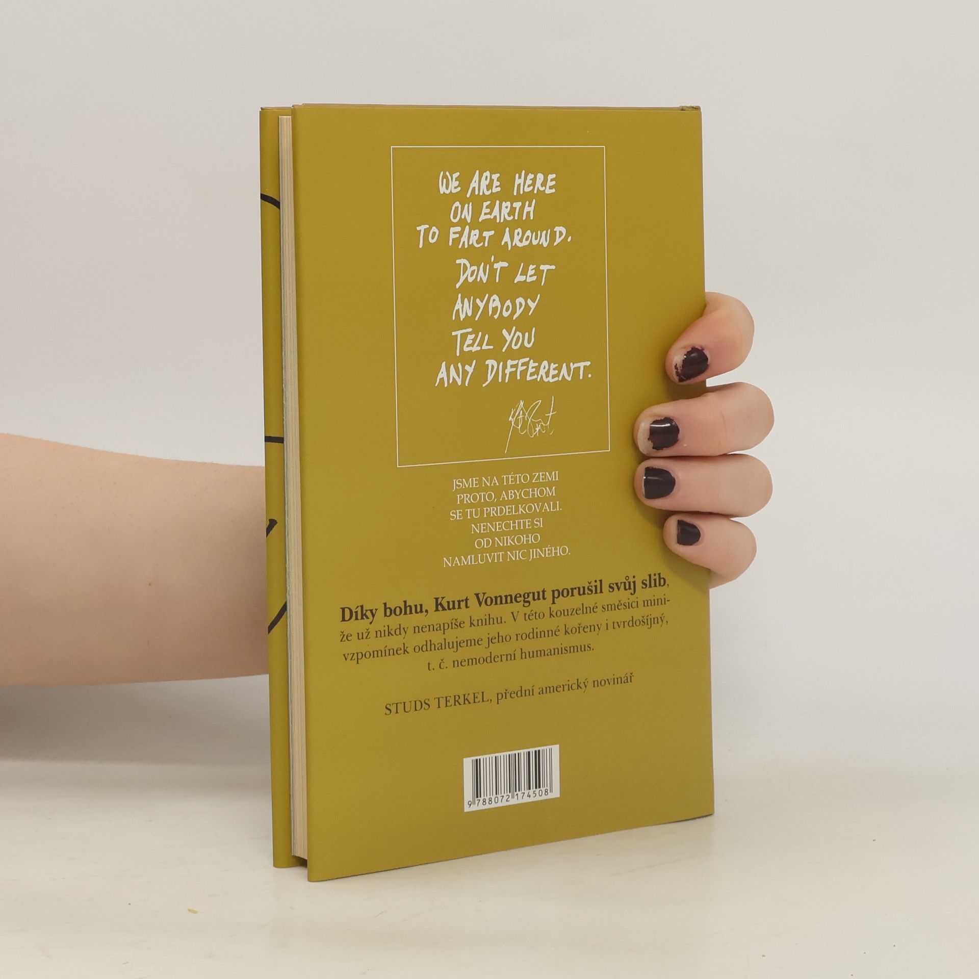 Nová kniha Kurta Vonneguta se od těch dosavadních v mnohém liší (nejde o beletrii, ale o krátké vzpomínky a úvahy), ale Vonnegut se svým ostrým zrakem a stručnými, přesnými komentáři je stále týž. Někdy zní sarkasticky, někdy nostalgicky, někdy téměř rezignovaně. Titul knihy naznačuje, že mu činí potíže se identifikovat se svou rodnou zemí. Vonnegut se obrací ke svým americkým spoluobčanům, ale kniha je přesto zajímavá i pro nás; ukazuje, jak vidí svět jeden z nejcitlivějších amerických intelektuálů, autor takových kultovních trháků jako Jatka č. 5, Kolíbka nebo Groteska. Jestli chcete vědět, kdo dnes podle Vonneguta ještě reprezentuje Ameriku, kterou měl kdysi rád, přečtěte si jeho knihu. Fanoušci George W. Bushe z ní mít radost nebudou ...