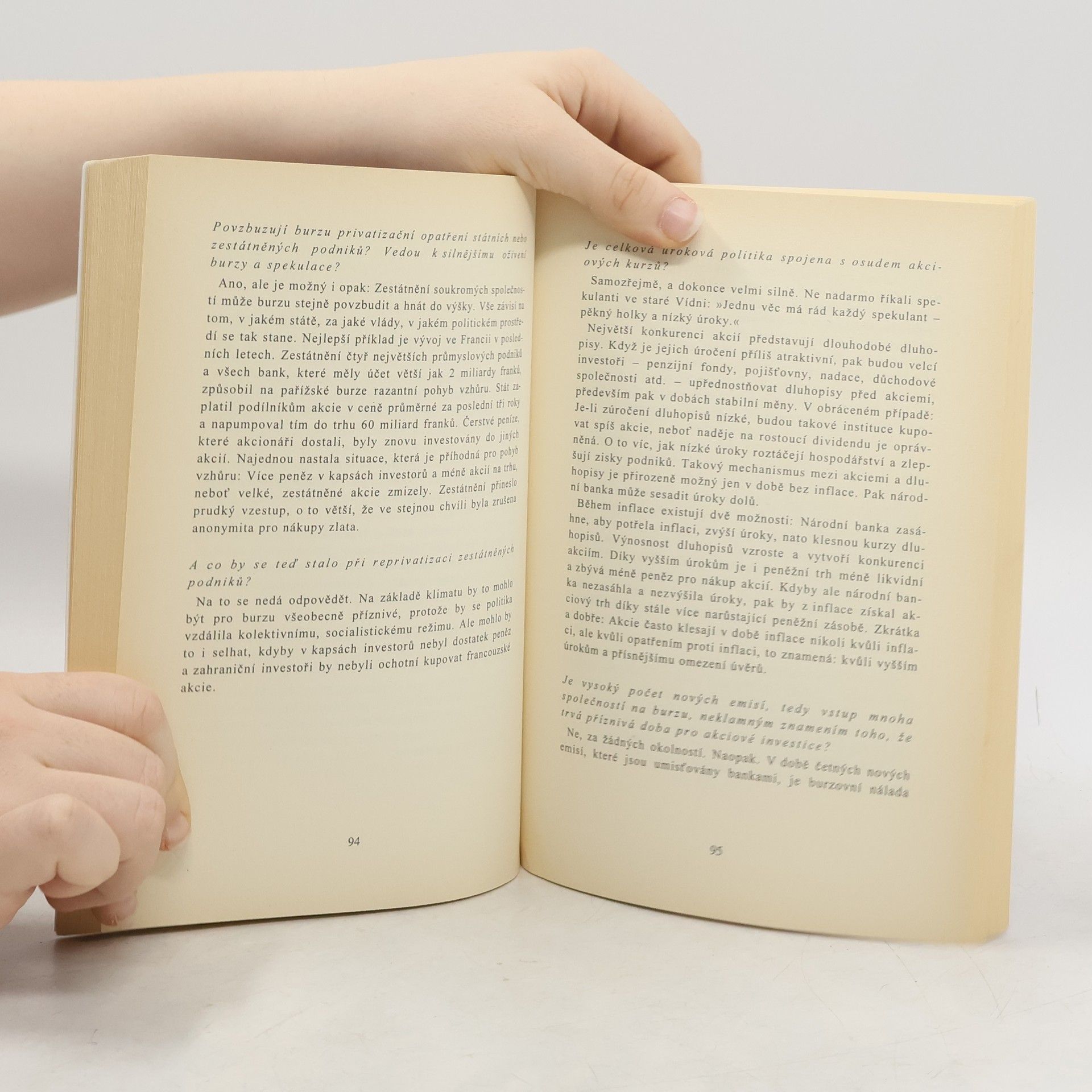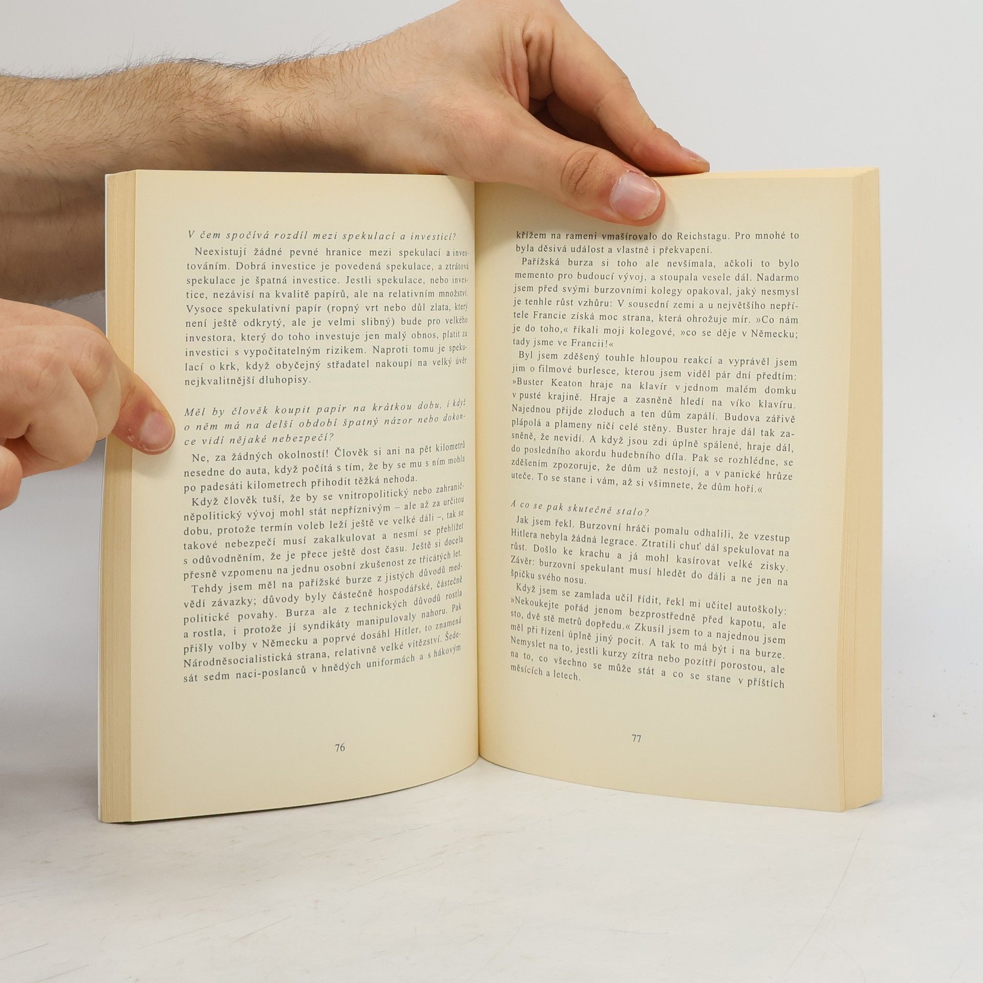 Co "Kostolanyho burzovní seminář" tak příjemně odlišuje od běžných publikací, je především připravenost psát o vášni k burzovní spekulaci. Angažovaně a s vtipem popisuje formou dialogu mechanismy burzy a říká věci, které čtenáře připravují o mnoho iluzí. André Kostolany sestavil katalog otázek, na které důkladně a od základu odpovídá se svou fundovanou profesionalitou. Jeho "burzovní seminář" je tak užitečný rádce každého kapitálového investora a spekulanta. A to především proto, že čtenáře podněcuje k pozornému sledování vlastního chování, zda disponuje psychickou a finanční stabilitou, které jsou předpokladem úspěšné spekulace.