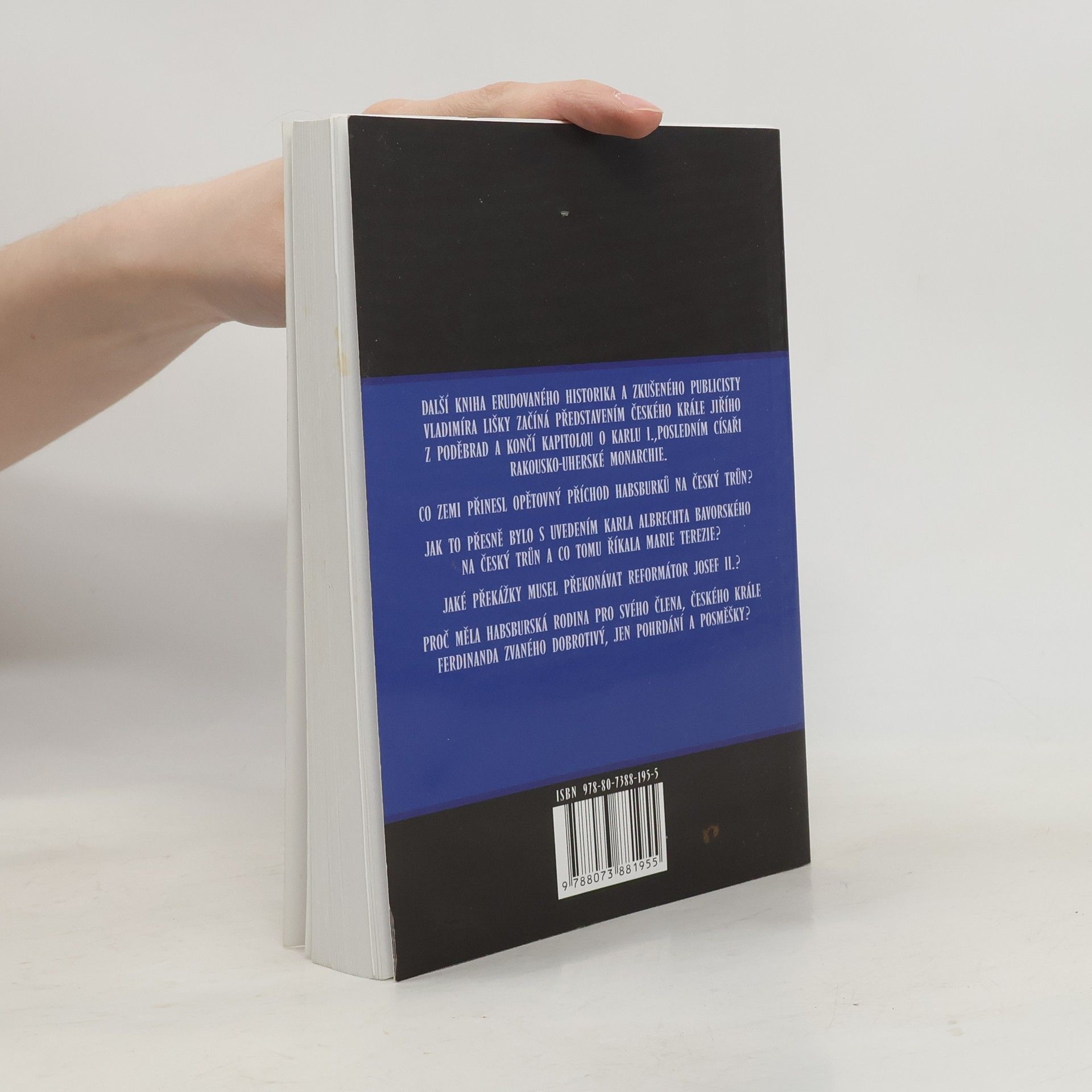 Další rozluštěná tajemství. Další kniha erudovaného historika a zkušeného publicisty Vladimíra Lišky začíná představením českého krále Jiřího z Poděbrad a končí kapitolou o Karlu I., posledním císaři rakousko-uherské monarchie. Co zemi přinesl opětovný příchod habsburků na český trůn? Jak to přesně bylo s uvedením Karla Albrechta Bavorského na český trůn a co tomu říkala Marie Terezie? Jaké překážky musel překonávat reformátor Josef II.?