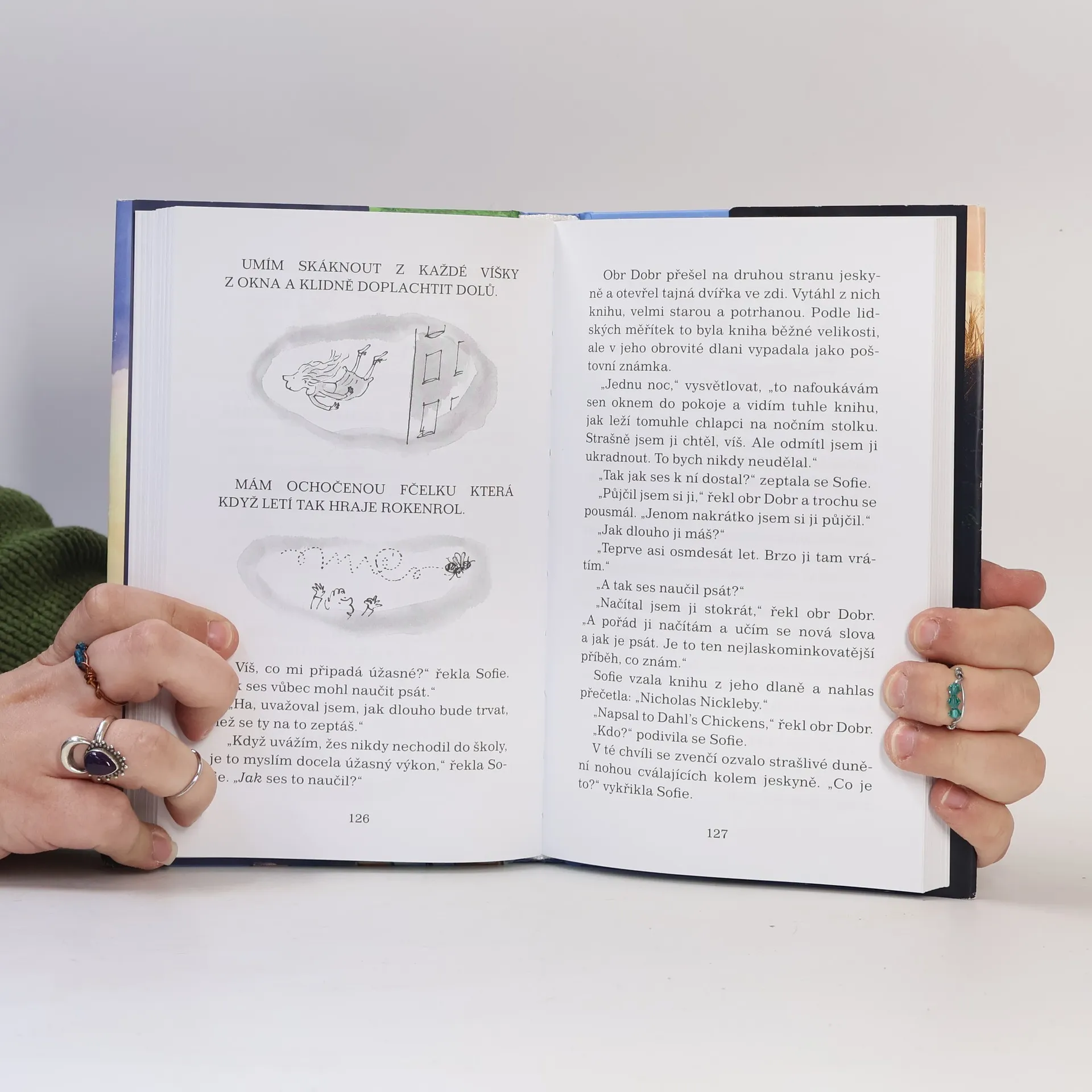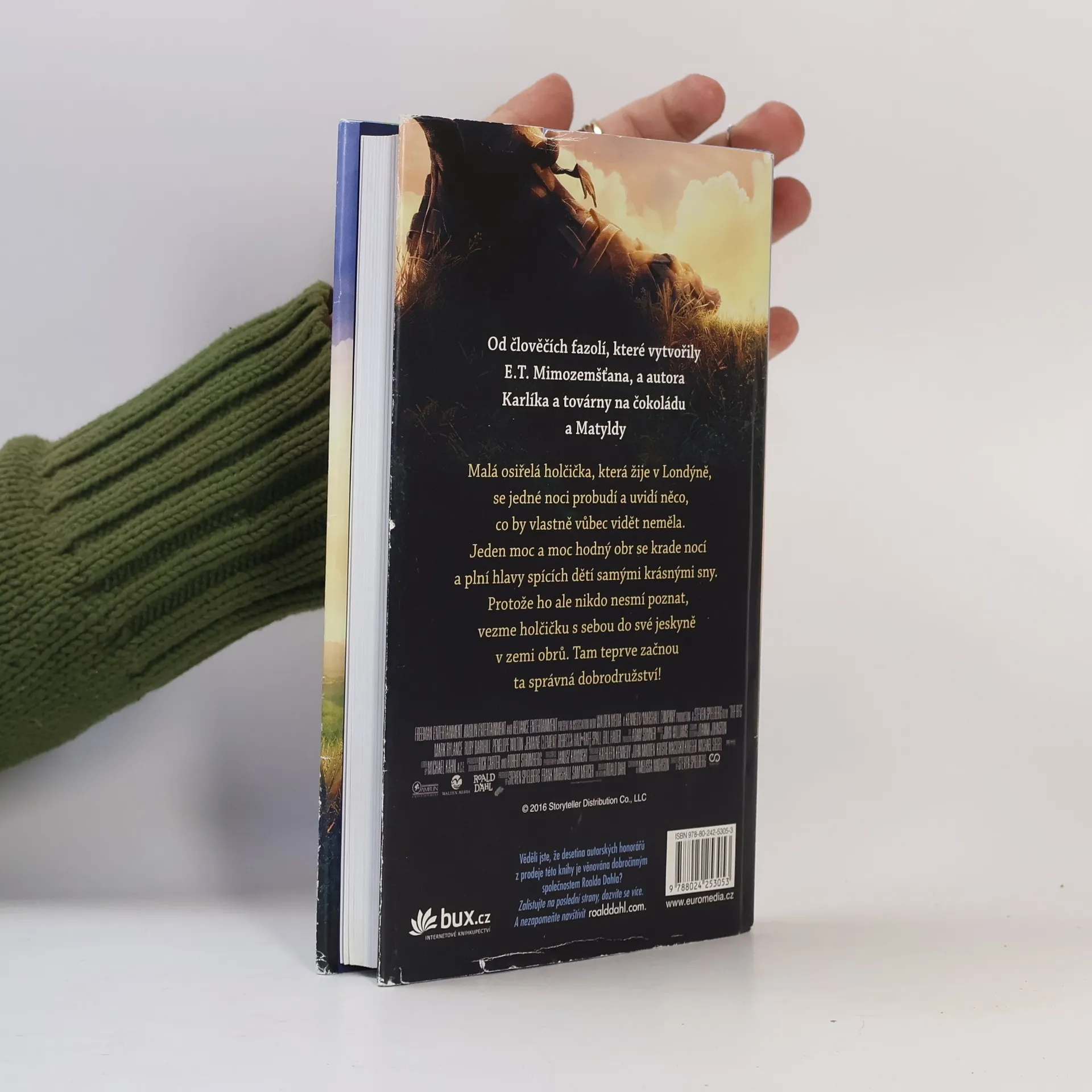 Malá osiřelá holčička, která žije v Londýně, se jedné noci probudí a uvidí něco, co by vlastně vůbec vidět neměla. Jeden moc a moc hodný obr se krade nocí a plní hlavy spících dětí samými krásnými sny. Protože ho ale nikdo nesmí poznat, vezme holčičku s sebou do své jeskyně v zemi obrů. Tam teprve začnou ta správná dobrodružství! Knihu zfilmoval Steven Spielberg. Stejnojmenný film přijde do českých kin 30.6.2016.