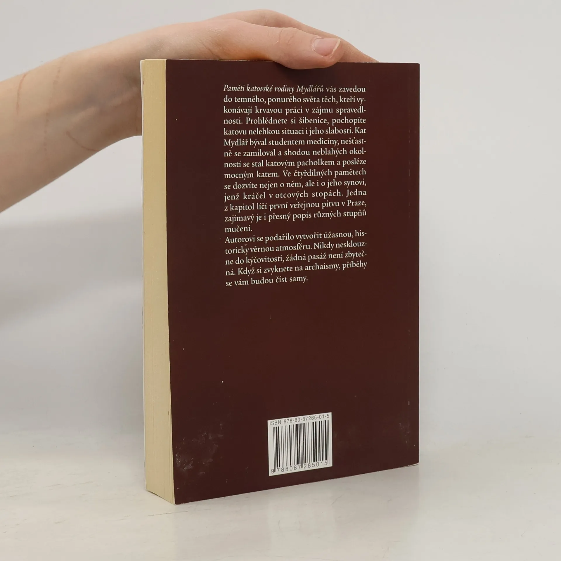 První svazek čtyřsvazkového vydání Pamětí katovské rodiny Mydlářů v Praze. Ocitnete se v temném světě těch, kteří dělají krvavou práci v zájmu spravedlnosti. Nic vám nezůstane utajeno. Prohlédnete si šibenice, pochopíte katovy slabosti a (ne)budete litovat jeho oběti. Paměti kata Mydláře nejsou obyčejnou knihou. Archaická čeština způsobí, že váš propad hrdlem dějin bude o to působivější. Kati vždy patřili k rozporuplným, opomíjeným osobnostem české společnosti. V zájmu veřejného pořádku občas zakročil a posekal pár hlav podvratných živlů. Knížka barvitě popisuje nejen tuto katovu každodenní rutinu (mučit, sekat, popravit), ale líčí životní příběhy dvou katů. Autorovi se podařilo vytvořit úžasnou, historicky věrnou atmosféru. Nikdy nesklouzne do kýčovitosti, žádná pasáž knihy není zbytečná. Série knih, která je působivá, důvěryhodná, poučná