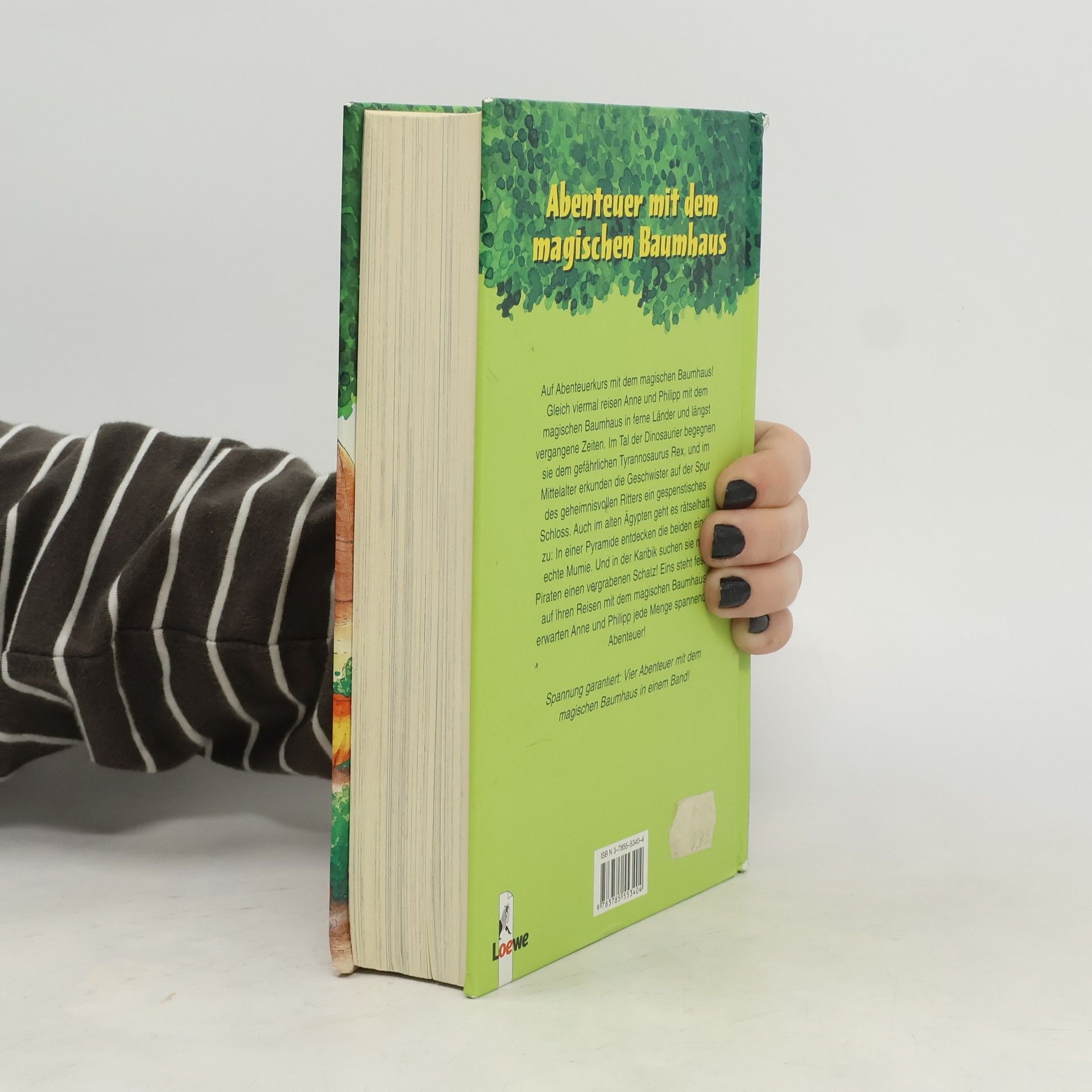 Auf Abenteuerkurs mit dem magischen Baumhaus! Gleich dreimal reisen Anne und Philipp mit dem magischen Baumhaus in ferne Länder und längst vergangene Zeiten. Im Tal der Dinosaurier begegnen sie dem gefährlichen Tyrannosaurus Rex, und im Mittelallter erkunden die Geschwister auf der Spur des geheimnisvollen Ritters ein gespenstisches Schloss. Auch im alten Ägypten geht es rätselhaft zu: In einer Pyramide entdecken die beiden eine echte Mumie. Und in der Karibik suchen sie mit Piraten einen vergrabenen Schatz! So viel steht fest - auf ihren Reisen mit dem magischen Baumhaus erwarten Anne und Philipp jede Menge spannende Abenteuer! Spannung garantiert: Drei Abenteuer mit dem magischen Baumhaus in einem Band!