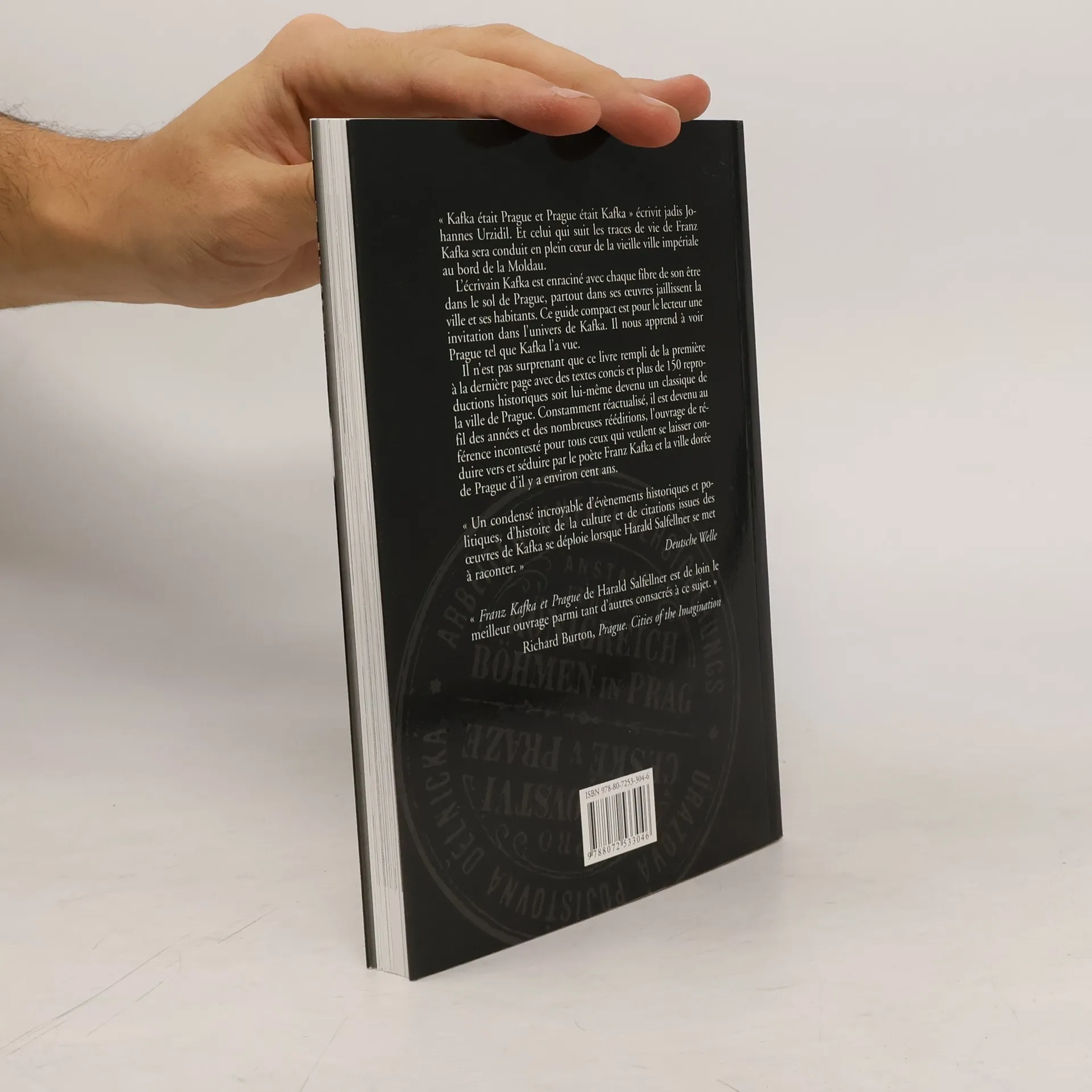 „Franz Kafka byl Praha a Praha byla Franz Kafka“, napsal kdysi Johannes Urzidil. A skutečně, kdo se vydá po stopách života Franze Kafky, toho cesta zavede přímo do srdce starého císařského města nad Vltavou. Až do morku kostí, celou svou bytostí je spisovatel Kafka zakořeněn v pražské půdě, všude v jeho díle probleskuje na povrch město a jeho lidé. Tento francouzsky psaný kompaktní průvodce zve čtenáře do Kafkova světa. Učí jej vidět Prahu tak, jak ji viděl Kafka. Při tom se tato publikace, překypující více než 150 historickými vyobrazeními a hojnými citáty z Kafkova díla a korespondence, stala díky autorově hutnému vypravěčskému stylu sama pražskou klasikou. Kniha je neustále průběžně aktualizována tak, aby odpovídala nejnovějšímu stavu poznání Kafkova života a díla, a je už dlouho ve svých četných vydáních nesporným standardním dílem pro všechny, kdož se chtějí nechat vést… a svést: k intimní známosti se spisovatelem Franzem Kafkou i Zlatou Prahou, jaká byla před zhruba sto lety. Z němčiny přeložil Markus Lüffe.