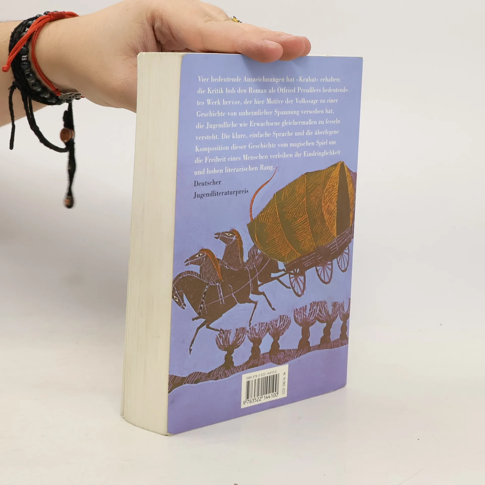 Drei Jahre verbringt Krabat beim teuflischen Meister in der Mühle im Koselbruch. Während seiner Lehrzeit als Müllerjunge lernt Krabat nicht nur das Müllern. Sein Meister ist ein böser Zauberer, aber durch die Liebe eines Mädchens kann Krabat sich und die anderen Müllerburschen aus den Fängen des Meisters retten und ihn unschädlich machen. Schulausgabe (kompletter Text) mit Zusatzinformationen zur Krabat-Sage, zur Entstehung des Buches und zum Autor. Ab 12 Jahren. Neuausgabe ab August 2009: kompletter Text ohne Zusatzinformationen: ISBN 978-3-522-20087-5.