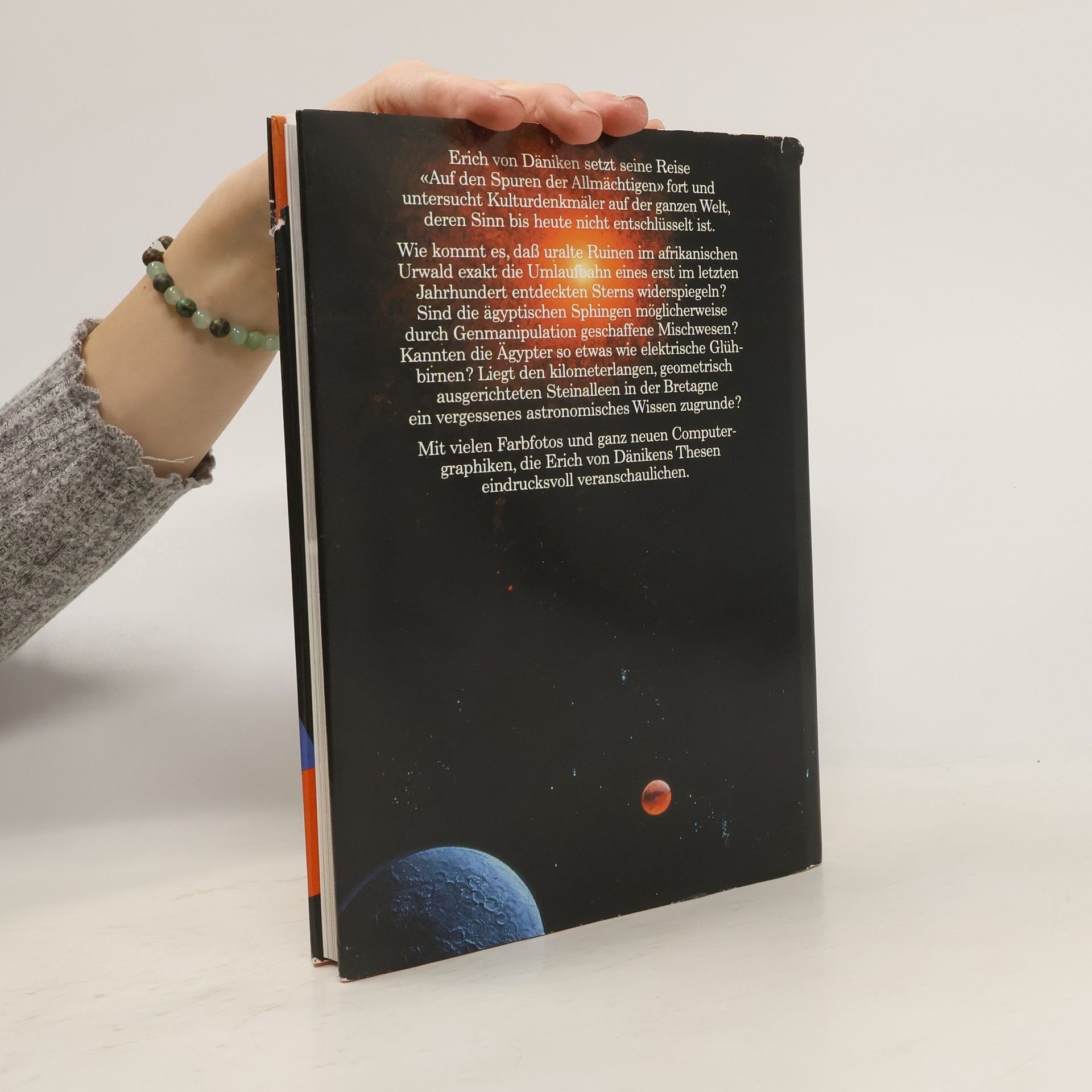 Erich von Däniken untersucht Kulturdenkmäler auf der ganzen Welt, deren Sinn bis heute nicht entschlüsselt ist. Wie kommt es, dass uralte Ruinen im afrikanischen Urwald exakt die Umlaufbahn eines erst im letzten Jahrhundert entdeckten Sterns widerspiegeln? Sind die ägyptischen Sphingen möglicherweise durch Genmanipulation geschaffene Mischwesen? Kannten die Ägypter so etwas wie elektrische Glühbirnen? Liegt den kilometerlangen, geometrisch ausgerichteten Steinalleen in der Bretagne ein vergessenes astronomisches Wissen zugrunde? Mit vielen Farbfotos und Computergrafiken, die Erich von Dänikens Thesen eindrucksvoll veranschaulichen.