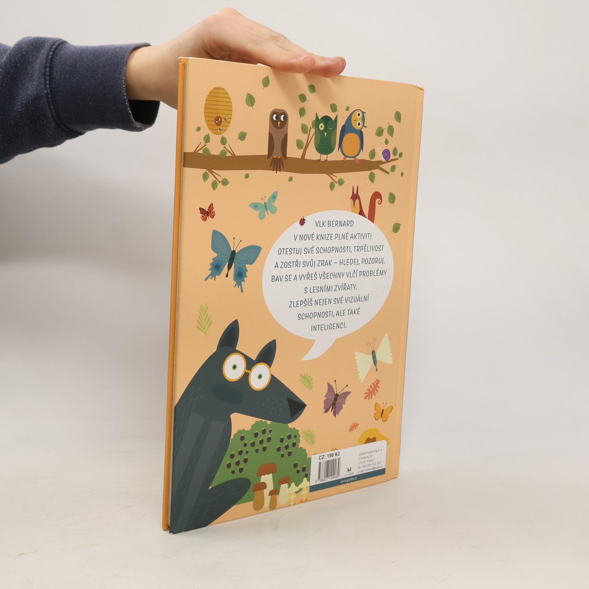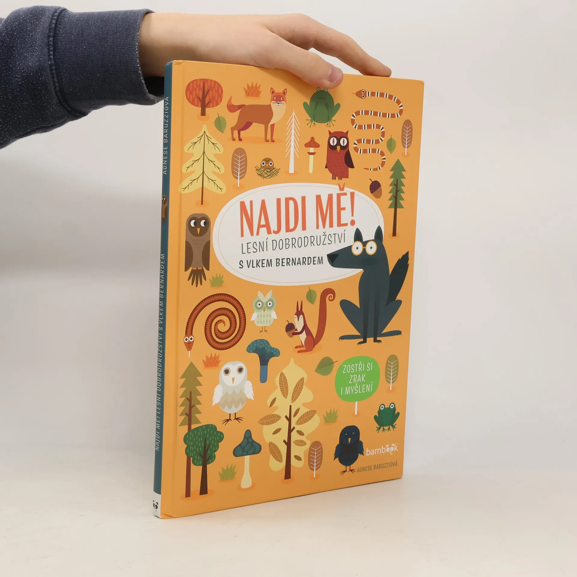 Už jste někdy potkali vlka v brýlích? Ale Bernard je opravdu potřebuje. Kamarádka veverka by mu ráda pomohla a zlepšila jeho vidění - proto pro něj chystá různé hledací hry, které Bernarda baví a ještě mu ostří zrak. Děti si s knihou užijí spoustu legrace a zároveň budou trénovat svůj postřeh, trpělivost a soustředění.
