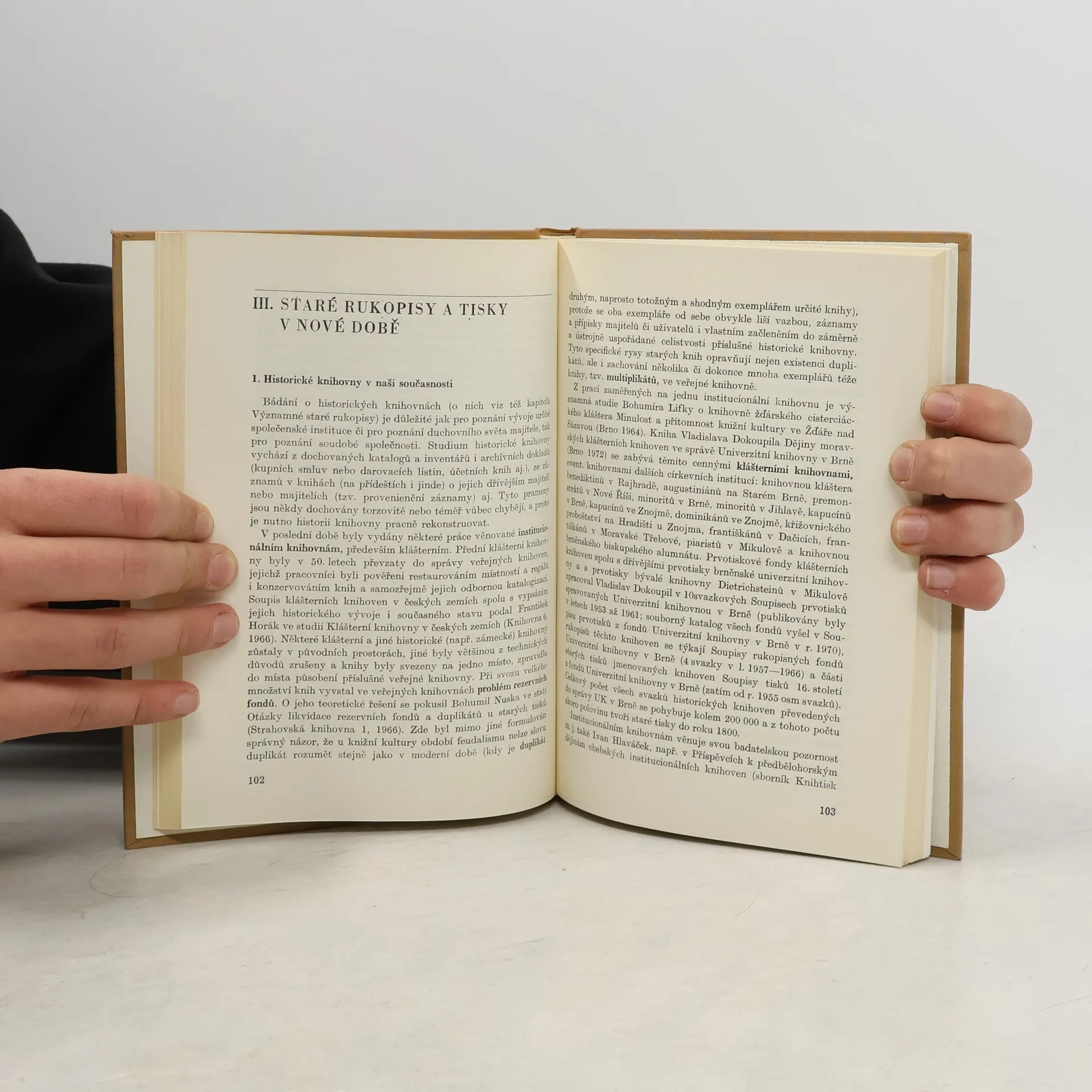 Učebnice, jež má sloužit jako doplněk přednášek ze starší české literatury a materiál k staročeskému semináři, podává základní poučení o starých rukopisech a starých tiscích od vynálezu knihtisku do národního obrození, a to včetněnejdůležitější knihovědné terminologie. Závěrem přináší stručný přehled vývoje staročeské literatury.