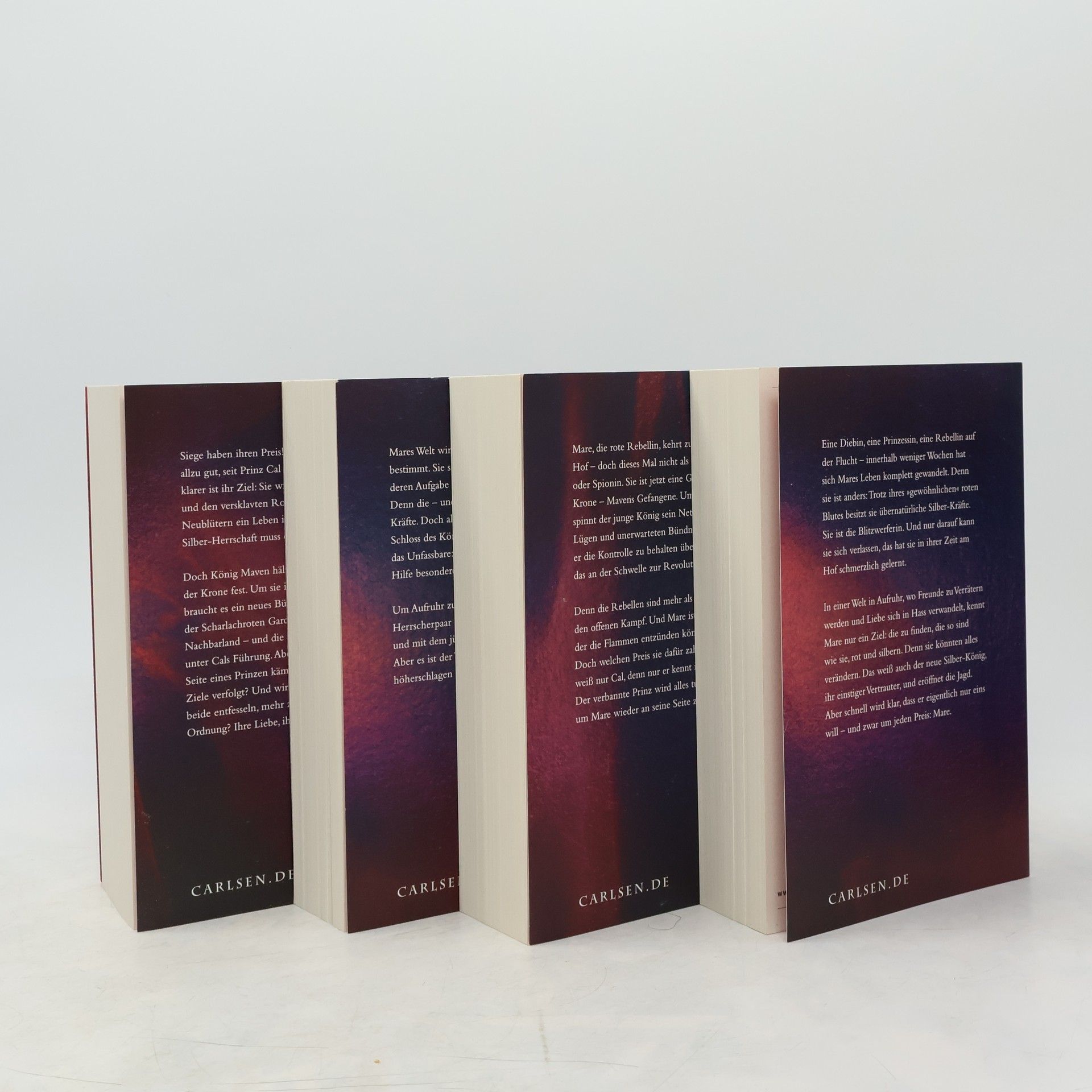 Fesselnd, vielschichtig und voller Leidenschaft – alle 4 Erzählbände der Bestseller-Serie im attraktiven Schuber: ein absolutes Fantasy-Highlight und ein Must-have fürs Bücherregal! Welche Farbe hat dein Blut? Diese Frage bestimmt die Welt, in der Diebin Mare lebt. Denn mit silbernem Blut gehen besondere Fähigkeiten einher und damit die gnadenlose Herrschaft über die niederen Roten. Aber was, wenn man auch als Rote über Kräfte verfügt, so wie Mare? Wenn man ins Visier des Silber-Königs gerät? Und die Aufmerksamkeit der roten Rebellen erregt? Sich in einen Prinzen verliebt, dem man nicht trauen kann? Entscheidungen treffen muss, die Opfer fordern, aber auch die Welt verändern könnten? Für Mare beginnt ein Kampf für ein freies Leben und für die Liebe. Diese Box enthält alle 4 Erzählbände der New-York-Times- und Spiegel-Bestseller-Serie DIE FARBEN DES BLUTES: Band 1: Die rote Königin Band 2: Gläsernes Schwert Band 3: Goldener Käfig Band 4: Wütender Sturm