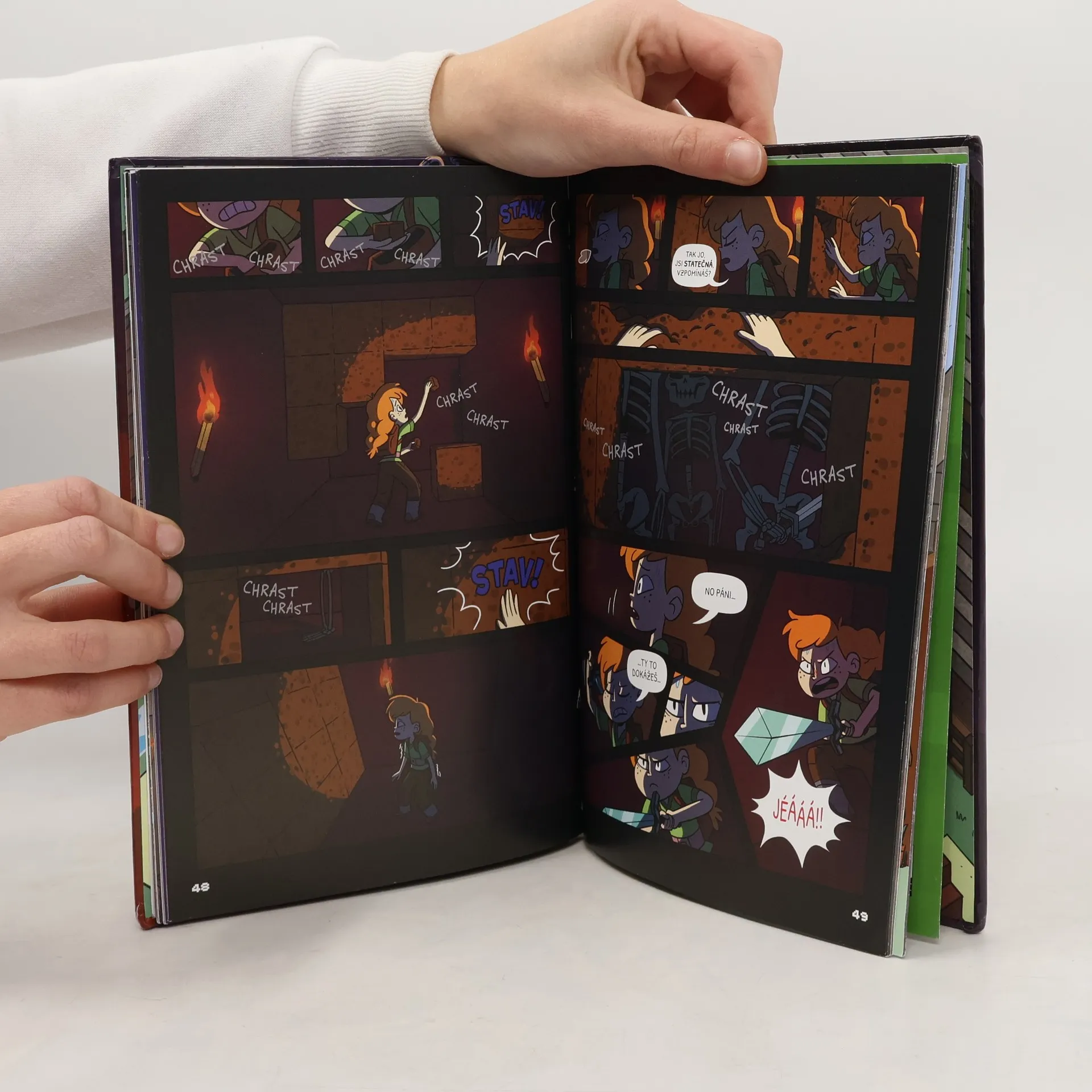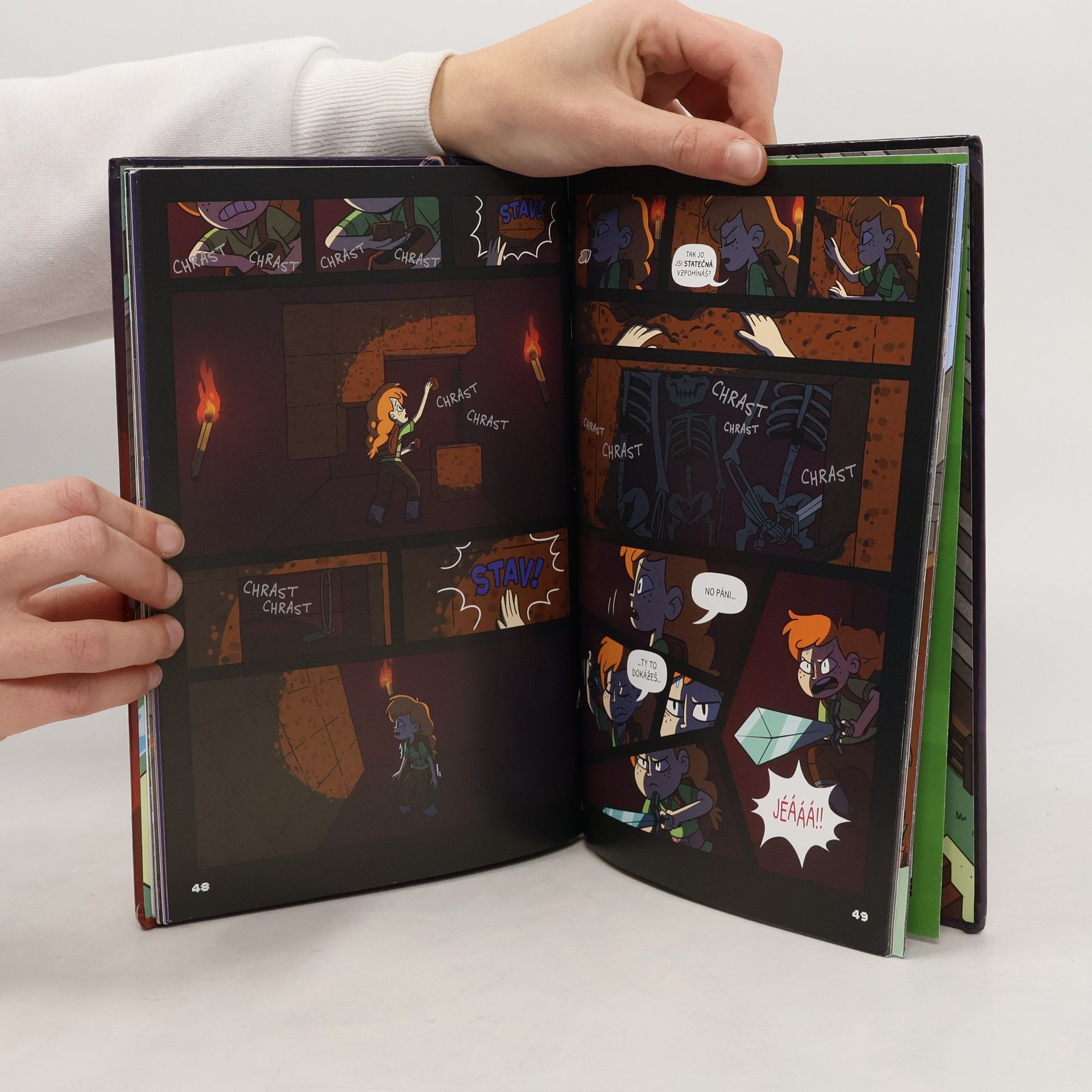Komiksový příběh odehrávající se ve světě Minecraftu. Do Minecraftu přichází Sára, nováček bez jakýchkoliv zkušeností, zato nabitý nezdolnou energií. Doufá, že ostřílený hráč Hektor jí bude průvodcem. Jenže Hektor je tak trochu bručoun a samotář a nemá ve zvyku hrát v týmu, natož se začátečníkem. Ale pod vlivem Sářina nadšení nakonec změní názor a stanou se z nich skvělí parťáci a hlavně přátelé. Nakladatelská anotace. Kráceno.