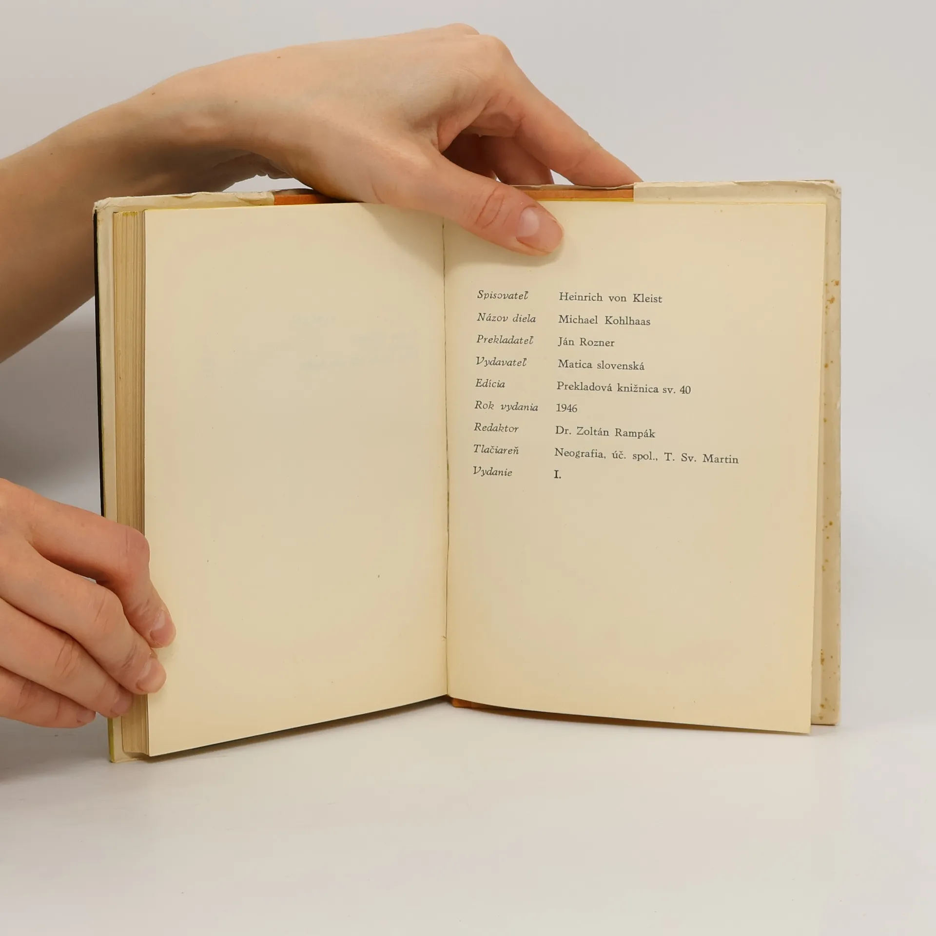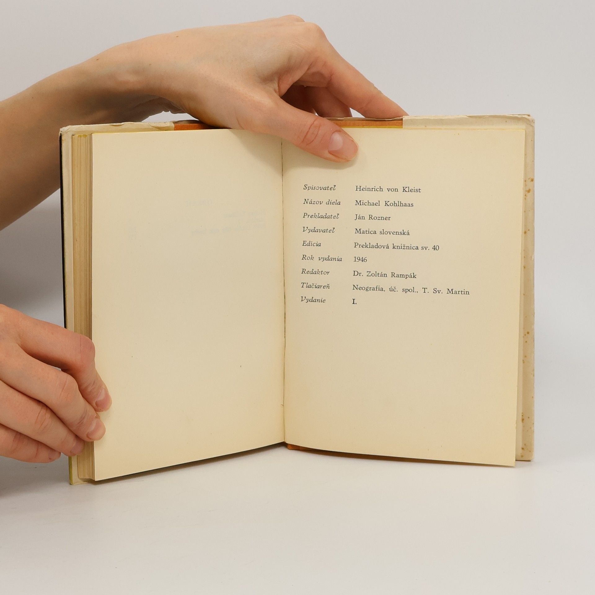 Titulná novela: Na brehu Havoly žil v polovici 16. storočia koniar Michael Kohlhaas, syn profesora, jeden z najstatočnejších a súčasne aj najstrašnejších ľudí svojich čias. Zväzok ďalej obsahuje novely Markíza O… a Svätá Cecília čiže moc hudby.