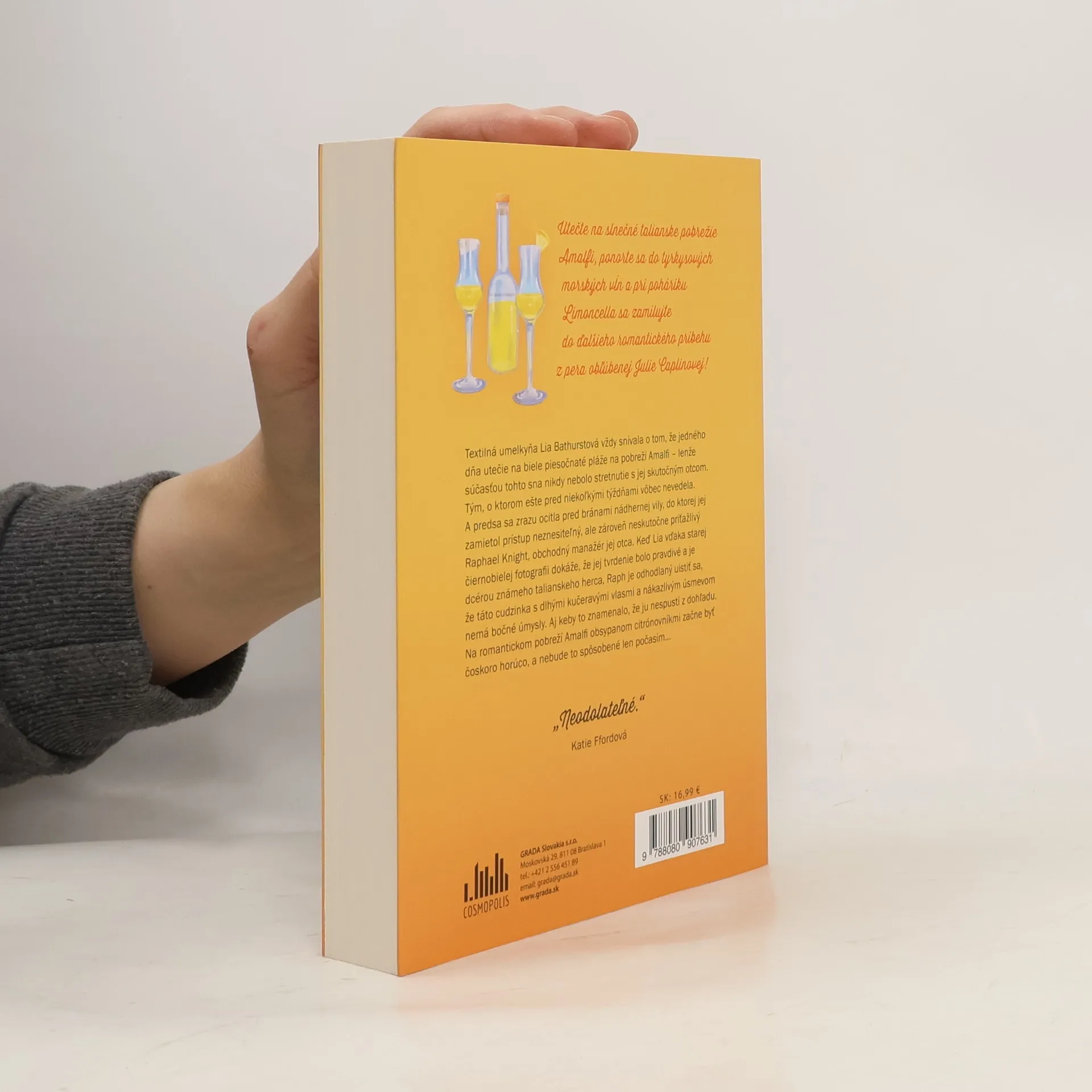 Lia Bathurst vždy snívala o úteku na biele piesočnaté pláže a o tyrkysovo modrom mori na pobreží Amalfi – lenže tento sen nezahŕňal stretnutie s jej skutočným otcom. Tým, o ktorom ešte pred niekoľkými týždňami vôbec nevedela. A predsa tu zrazu stojí pred bránami nádhernej ružovej vily,do ktorej jej zamietol prístup neznesiteľný – a zároveň neskutočne príťažlivý – Raphael Knight, obchodný manažér jej otca. Keď stará čiernobiela fotografia dokáže, že Liino tvrdenie je pravdivé, Raph je odhodlaný uistiť sa, že táto cudzinka s dlhými karamelovými vlasmi a nákazlivým úsmevom nemá postranné úmysly. Aj keby to znamenalo, že ju nespustí z dohľadu. Na pobreží Amalfi obsypanom citrónovníkmi začína byť horúco, a nie je to spôsobené len počasím...