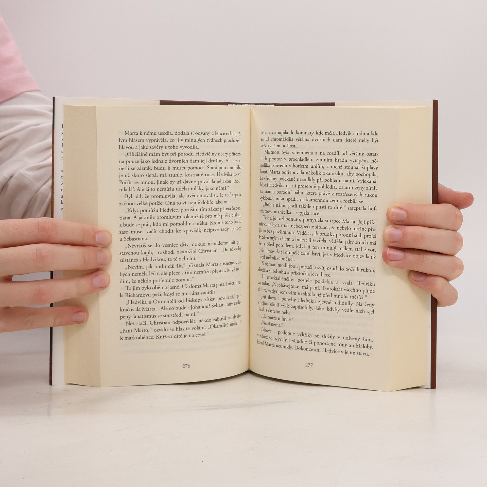 Druhý díl pětidilné německé ságy z temného středověku. Sasko v roce 1173 Porodní bába Marta a její manžel Christian by mohli žít šťastně a spokojeně, ale přichází špatná zpráva: Randolf, Christianův úhlavní nepřítel, se vrátil z cesty do Svaté země. A navíc se ve vesnici objeví medikus, jemuž je Marta se svou schopností léčit lidi už dávno trnem v oku. Okamžitě se chopí příležitosti, aby porodní bábu udal. Christian chce manželku odvést do bezpečí, ale je pozdě. Marta se musí před církevním soudem zodpovídat z nařčení, že je čarodějnice…