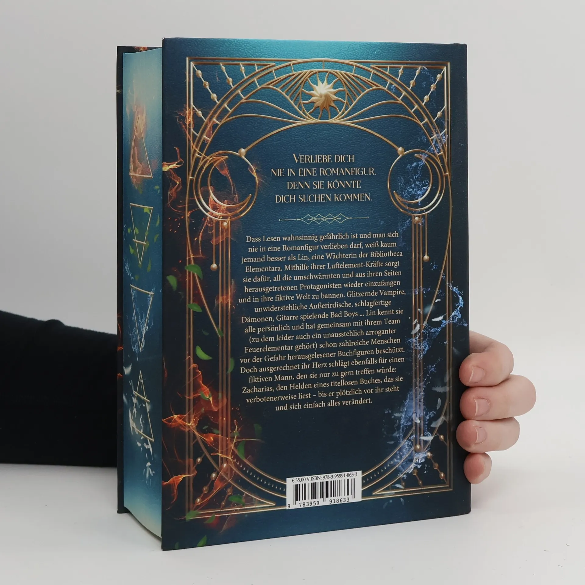 *Verliebe dich nie in eine Romanfigur, denn sie könnte dich suchen kommen.* Dass Lesen wahnsinnig gefährlich ist und man sich nie in eine Romanfigur verlieben darf, weiß kaum jemand besser als Lin, eine Wächterin der Bibliotheca Elementara. Mithilfe ihrer Luftelement-Kräfte sorgt sie dafür, all die umschwärmten und aus ihren Seiten herausgetretenen Protagonisten wieder einzufangen und in ihre fiktive Welt zu bannen. Glitzernde Vampire, unwiderstehliche Außerirdische, schlagfertige Dämonen, Gitarre spielende Bad Boys ... Lin kennt sie alle persönlich und hat gemeinsam mit ihrem Team (zu dem leider auch ein unausstehlich arroganter Feuerelementar gehört) schon zahlreiche Menschen vor der Gefahr herausgelesener Buchfiguren beschützt. Doch ausgerechnet ihr Herz schlägt ebenfalls für einen fiktiven Mann, den sie nur zu gern treffen würde: Zacharias, den Helden eines titellosen Buches, das sie verbotenerweise liest – bis er plötzlich vor ihr steht und sich einfach alles verändert. Sammelband beinhaltet die Einzelbände: Die Magie zwischen den Zeilen Die Welt hinter den Buchstaben Das Geheimnis unter der Tinte