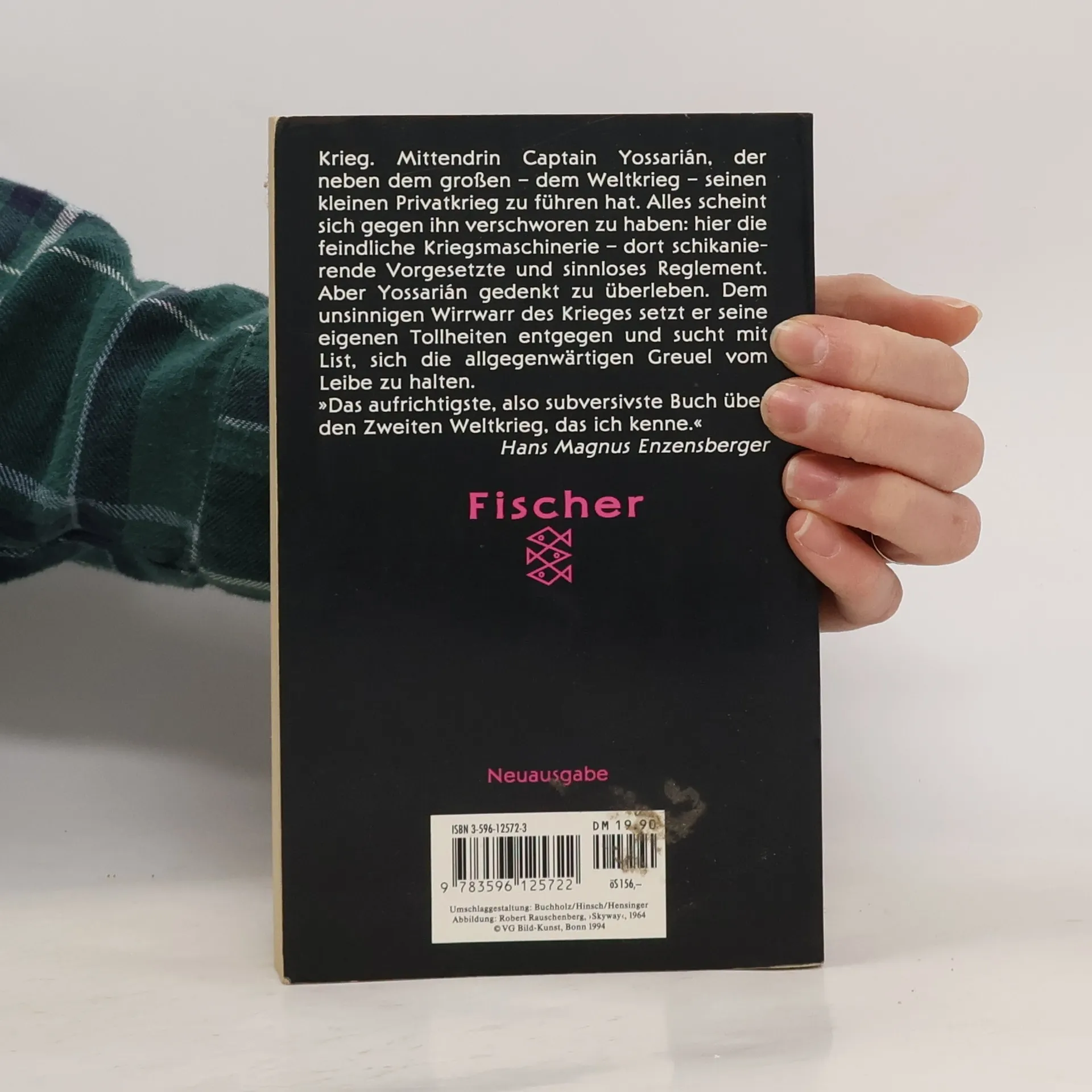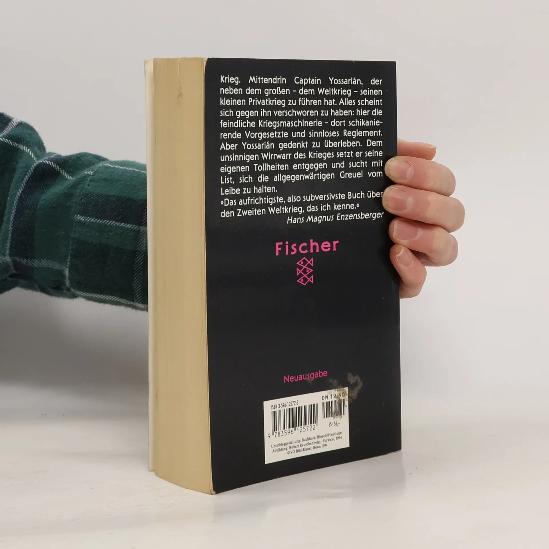 "Catch 22, also Falle 22 oder Trick 22- das ist die ebenso irrsinnige wie ausweglose Dienstanweisung für das amerikanische Bombengeschwader, der zufolge Bomberpilot Yossarian nur dann von weiteren Einsätzen verschont bleibt, wenn er als verrückt anerkannt wird. Verrückt aber kann niemand sein, der sich weigern will, immer weitere großenteils sinnlose Einsätze zu fliegen. Also muß Yossarian ebenso wie seine Kameraden weiterfliegen, obwohl er sich die größte Mühe gibt, als verrückt zu erscheinen. Durch scheinbar absurdes Verhalten der militärischen Maschinerie ihre eigene Absurdität zu demonstrieren. Aber die Kriegsmaschinerie, gespeist aus persönlichem Ehrgeiz, Dummheit, Brutalität und Duckmäuserei, erkennt ihren eigenen Irrsinn nicht in dem Spiegel, den Yossarian - im Grunde der einzig Normale unter lauter Verrückten - vorhält." (fischer)