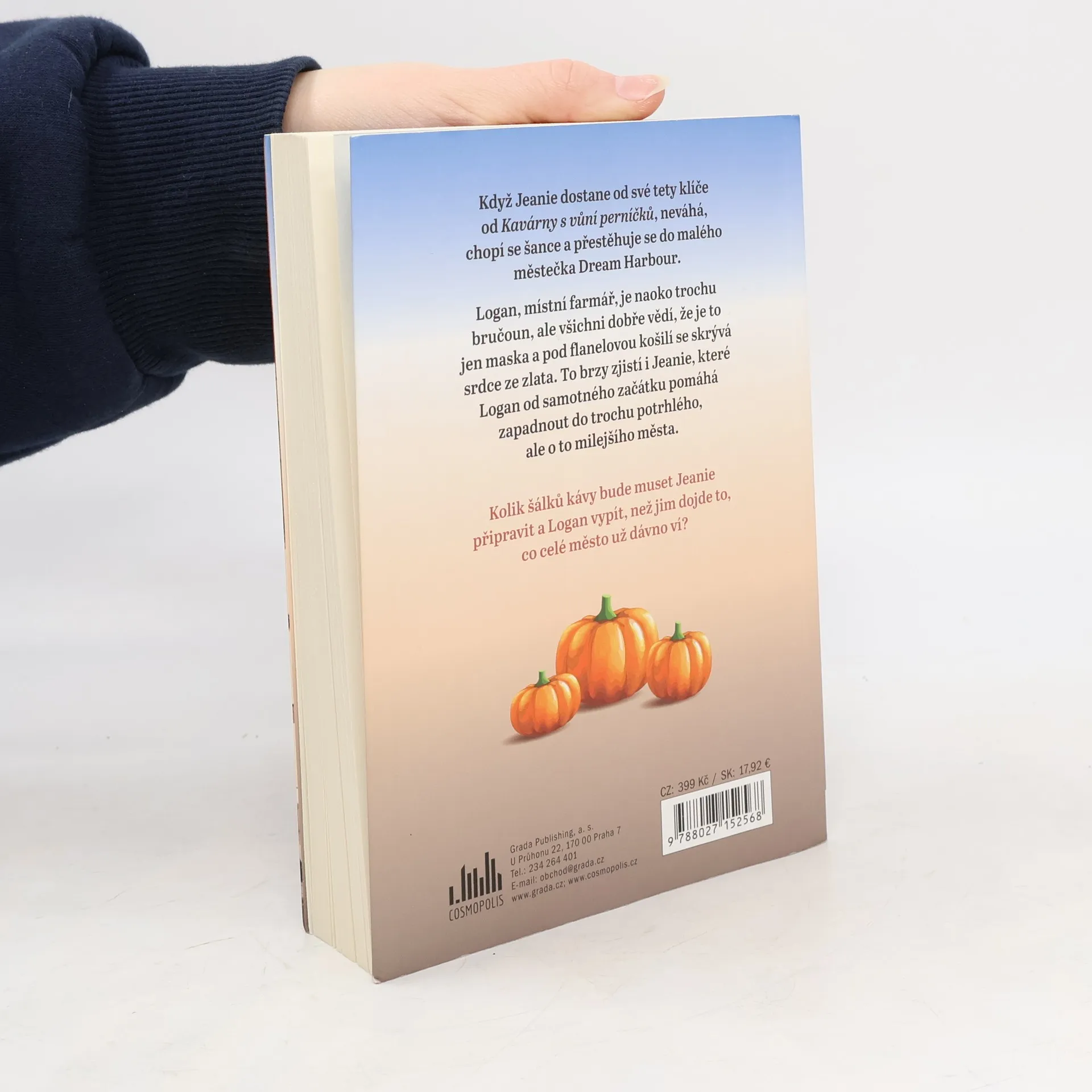 Když Jeanie dostane od své tety klíče od Kavárny s vůní perníčků, neváhá, chopí se šance a přestěhuje se do malého městečka Dream Harbour. Logan, místní farmář, je naoko trochu bručoun, ale všichni dobře vědí, že je to jen maska a pod flanelovou košilí se skrývá srdce ze zlata. To brzy zjistí i Jeanie, které Logan od samotného začátku pomáhá zapadnout do trochu potrhlého, ale o to milejšího města. Kolik šálků kávy bude muset Jeanie připravit a Logan vypít, než jim dojde to, co celé město už dávno ví?