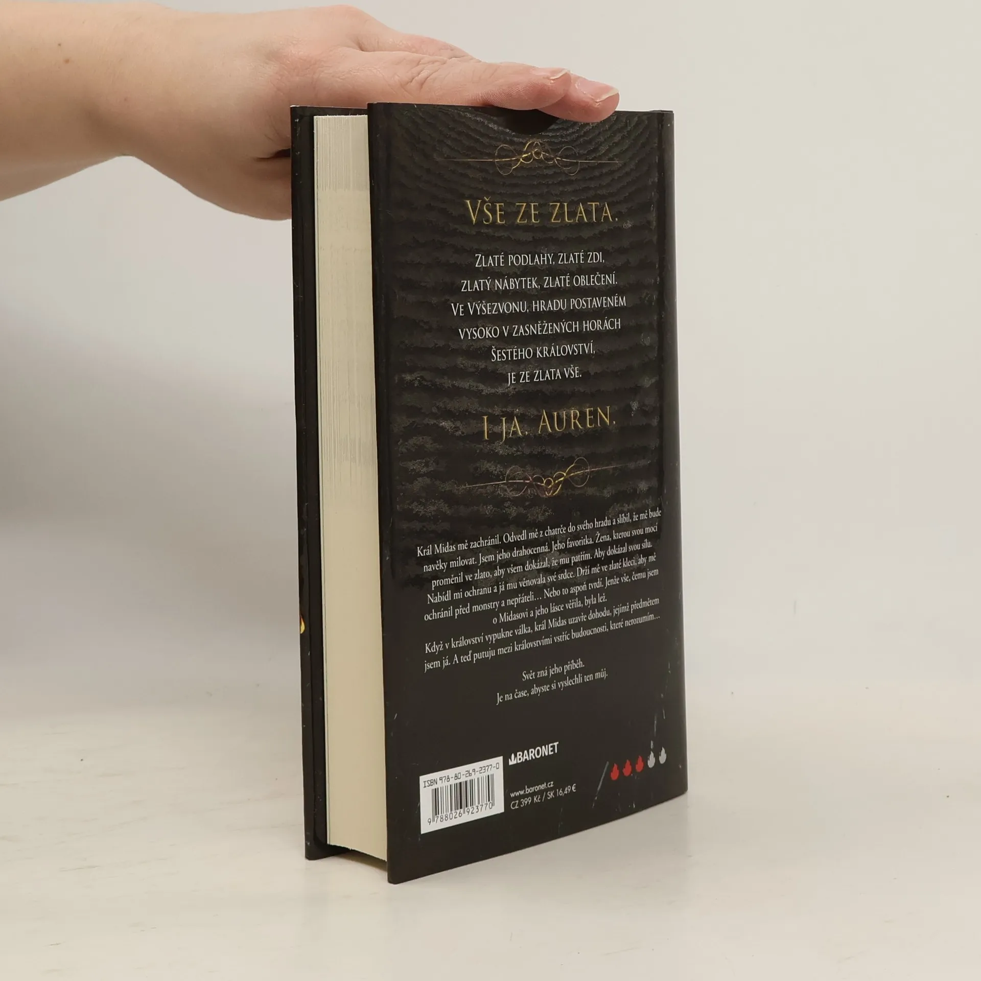 Fantasy romance je úvodní částí pětidílné série, pro kterou se autorka nechala inspirovat řeckou bájí o králi Midasovi. Auren, nová favoritka krále Midase, je zahalena přepychem a ochranou mocného vládce. Z původního přesvědčení o jeho citech je vržena do kruté reality. Je pouhou loutkou v panovníkových mocenských hrách. Záleží jen na ní, jestli dokáže obrátit tuto hru ve svůj prospěch.