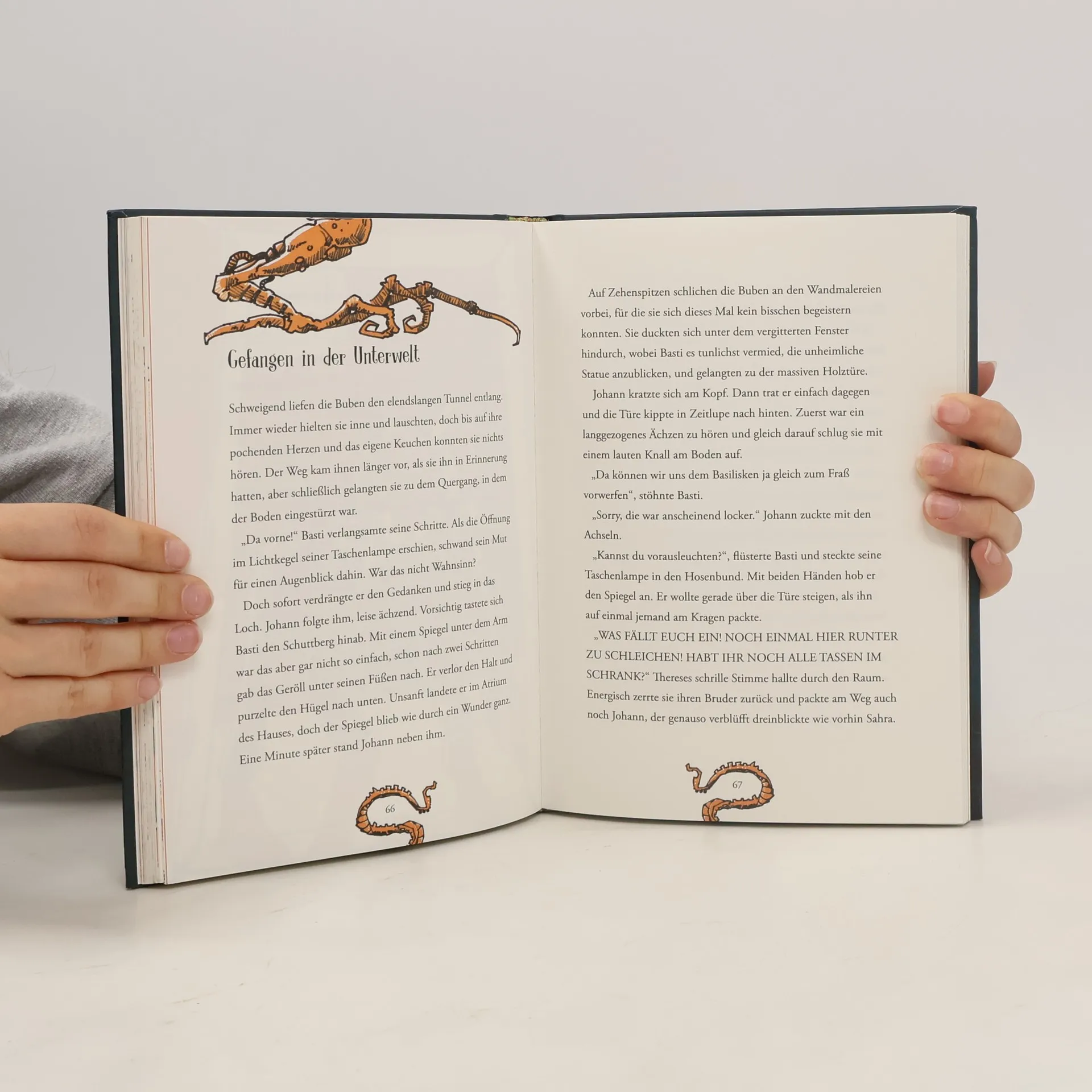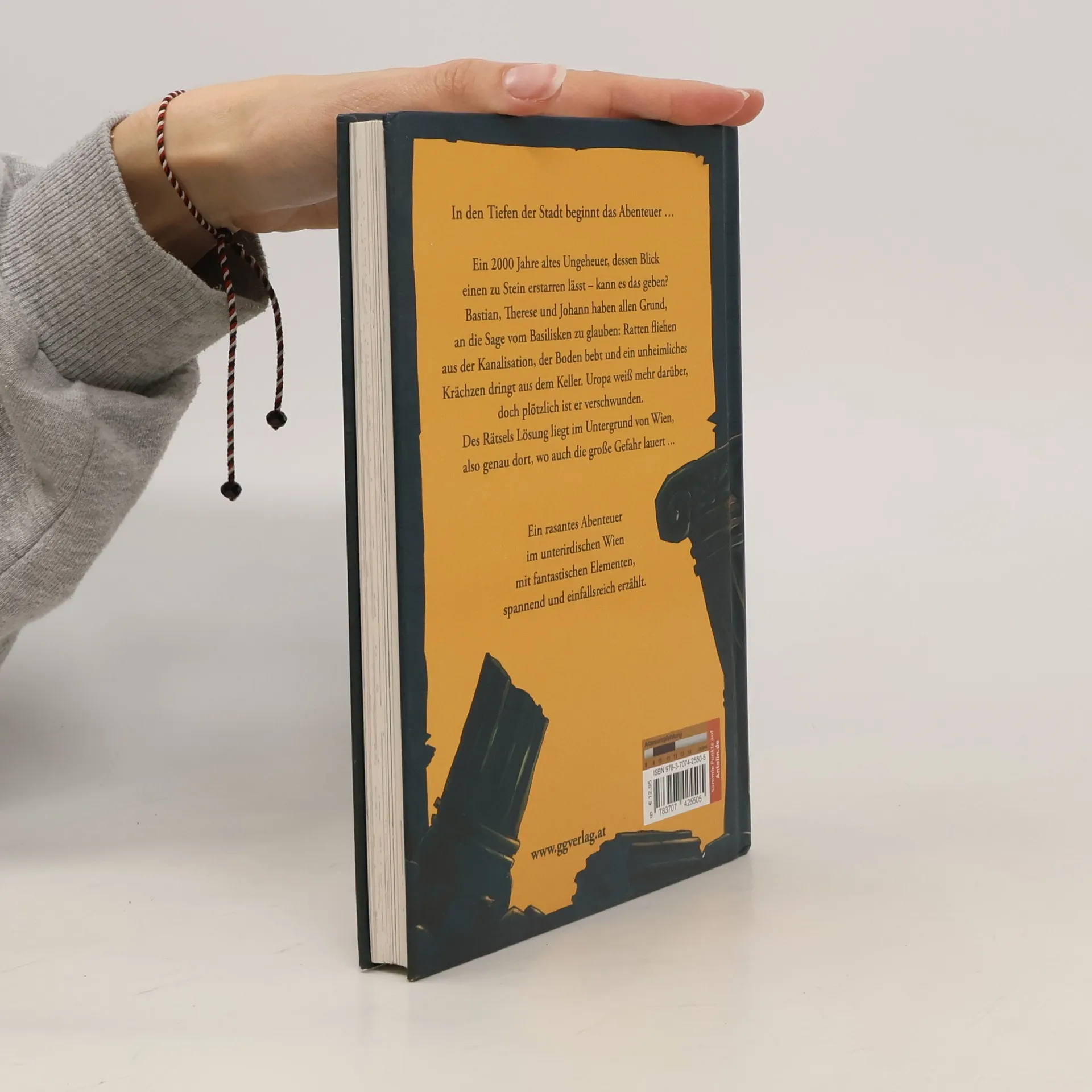 Bastian, Therese und Johann spielen Verstecken. Nicht irgendwo, sondern in den alten, weitläufigen, dunklen Kellern unter den Häusern im Herzen Wiens. Doch aus dem coolen Spiel wird bald ein unheimliches Abenteuer, als der Boden zu beben beginnt, gefolgt von einem unter die Haut gehenden Gekrächze. Und dann verschwindet auch noch Uropa aus seiner Wohnung! Die Kinder müssen wieder in den Untergrund und stoßen dabei auf die Sage vom Basilisken, dessen Blick einen zu Stein erstarren lässt. Doch ist Uropa überhaupt noch zu retten? Das Krächzen aus der Tiefe wird immer lauter und bedrohlicher …