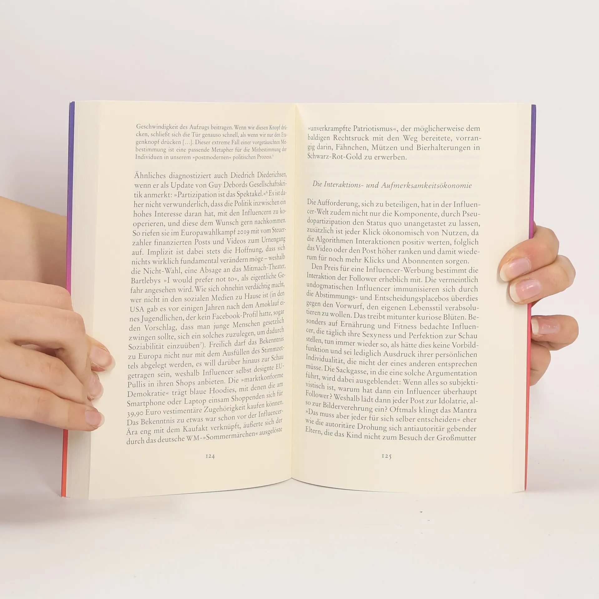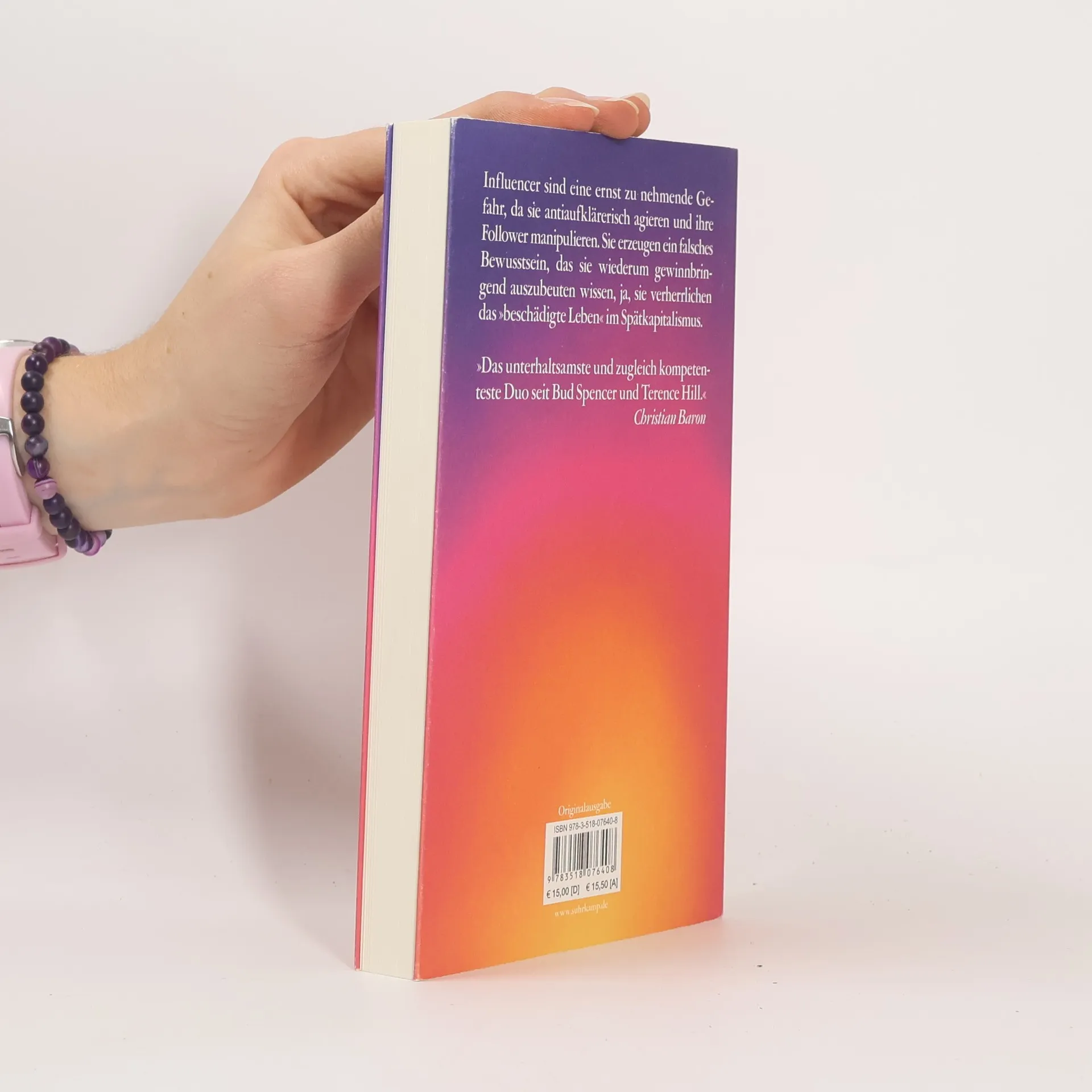 Menschen über dreißig kennen oft nicht einmal ihre Namen, für jüngere Jahrgänge sind sie Topstars: Influencer. Junge Erwachsene und sogar Kinder filmen sich beim Schminken, auf Reisen oder beim Sport und teilen ihre Tipps über soziale Medien mit ihren Fans. Dabei platzieren sie geschickt Produkthinweise und verdienen so ihren Lebensunterhalt – oder gar ein Vermögen.Für Ole Nymoen und Wolfgang M. Schmitt sind die Influencer symptomatische Sozialfiguren unserer Zeit. In der Abstiegsgesellschaft scheinen noch einmal Aufstiegsträume wahr zu werden, der Spätkapitalismus hübscht sein Gesicht mit Filtern und Photoshop auf, mit einer revolutionären Form der Werbung komplettieren Instagrammer und Youtuber das Geschäftsmodell des kommerziellen Internets. Bei aller ausgestellten Modernität, so Nymoen und Schmitt, beeinflussen die Influencer jedoch noch in einer weiteren Hinsicht den Zeitgeist: Indem sie rückwärtsgewandte Rollenbilder, Konsumismus und rigide Körpernormen propagieren, leisten sie einem konservativen Backlash Vorschub.