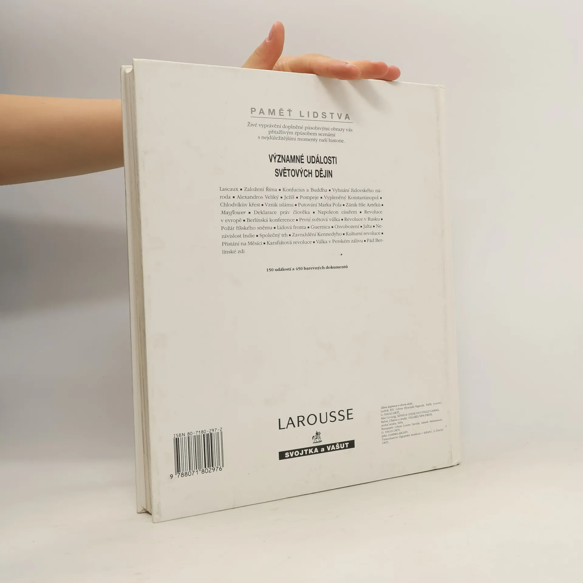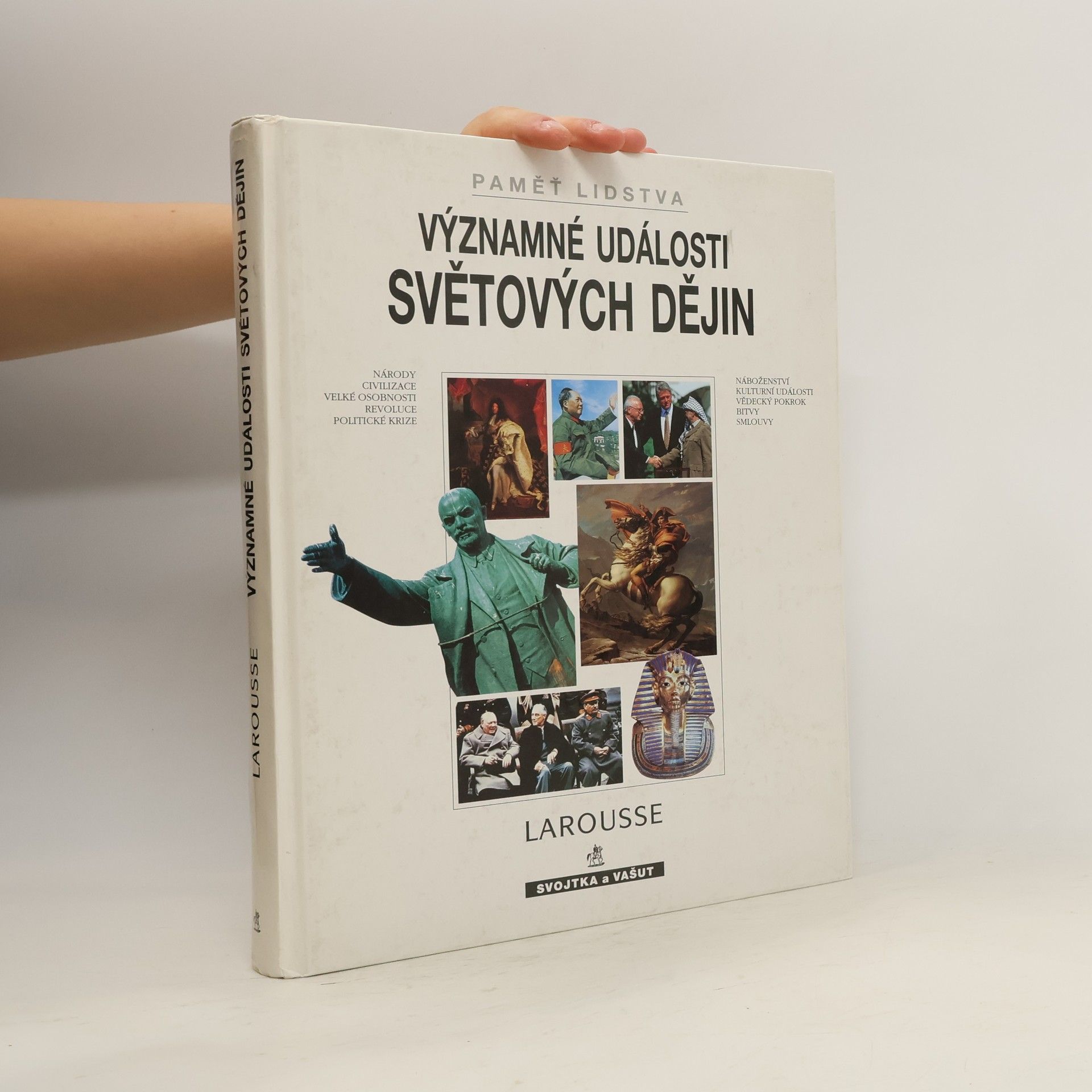 Kniha Významné události světových dějin podává podrobný výklad historie světa doplněný více než 500 fotografiemi a ilustracemi. Je to srozumitelný atlas světových dějinných událostí obsahující množství přehledných map. Tato kniha je určena ke čtení i k prohlížení. Dějiny lidstva popsané ve 150 kapitolách je možno číst jako dobrodružný příběh, jehož dějišti se stávají nejrůznější kouty světa od příchodu prvního člověka až po opětovnou volbu Borise Jelcina za prezidenta Ruska. Časově se jedná o rozmezí 3 100 000 let př. n. l. až po rok 1996 našeho letopočtu.