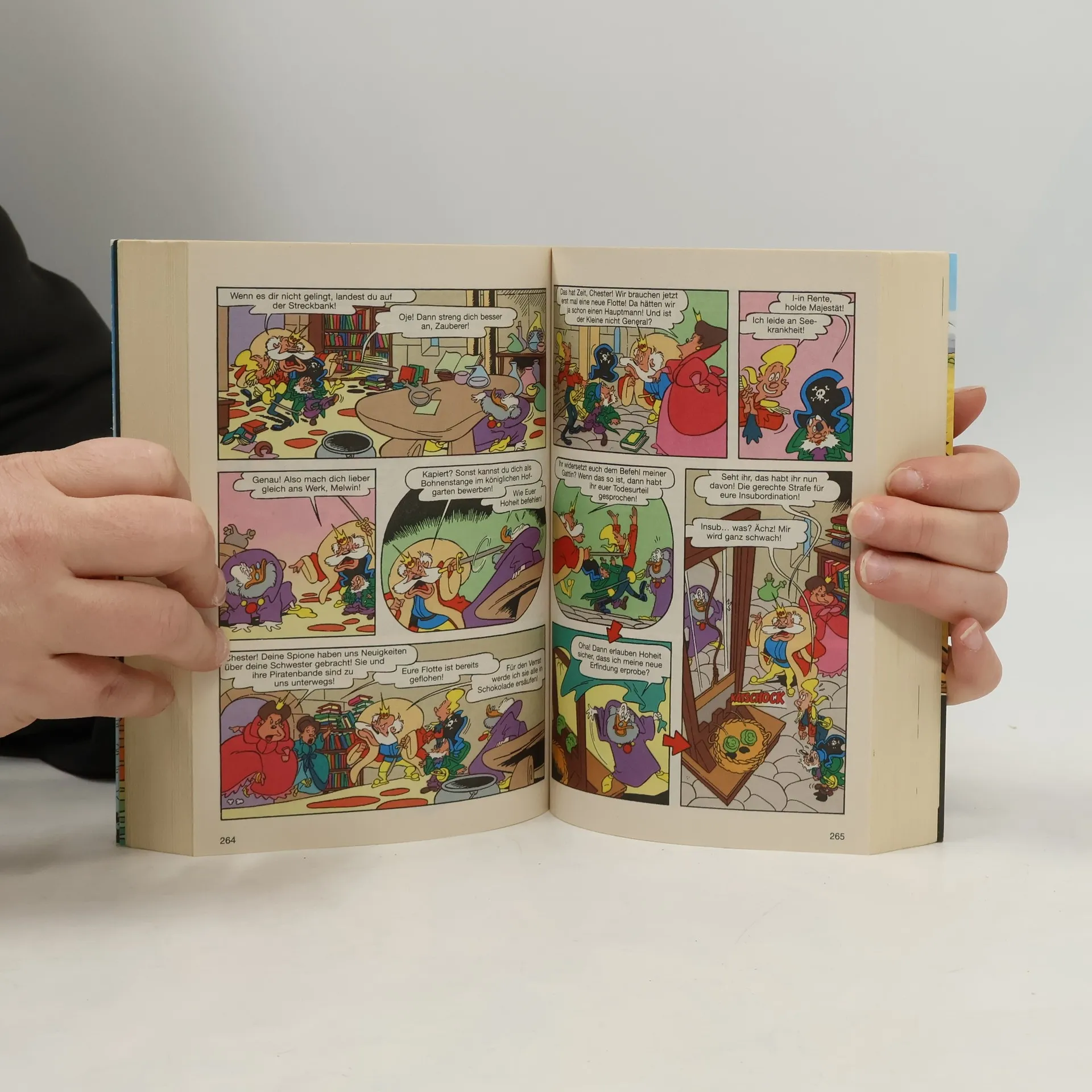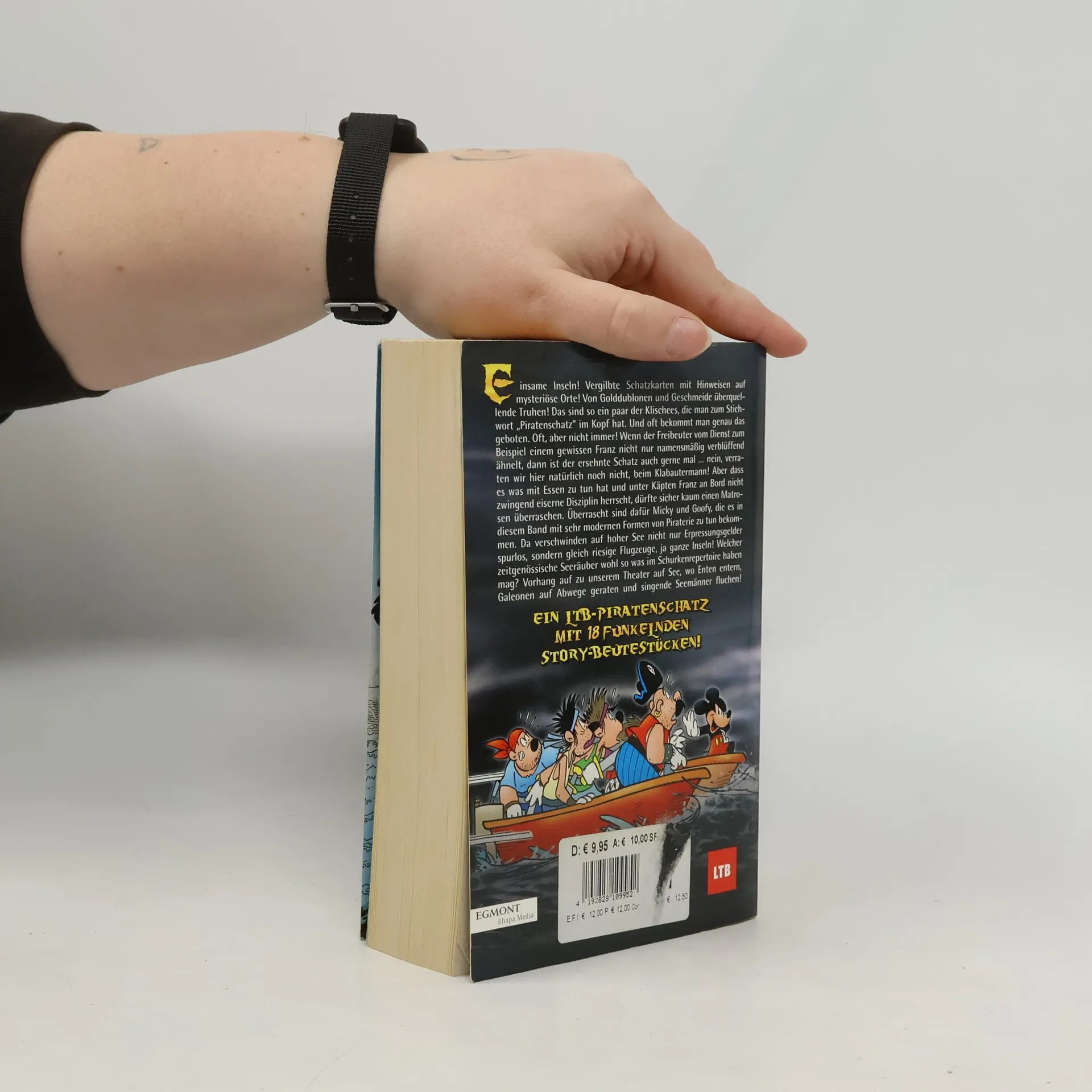 Beim Stichwort „Piratenschatz“ geraten sogar gestandene Seemänner ins Träumen von vergilbten Schatzkarten und vergessenen Truhen voller Golddublonen und funkelndem Geschmeide. Für die Verheißung von Ruhm und Reichtum nehmen sie sogar die verhängnisvollen Gefahren der hohen See auf sich, um sich auf den Weg zu einsamen Inseln und mysteriösen Orten zu machen. Soweit zumindest das Klischee. Wenn es sich beim Freibeuter vom Dienst allerdings um einen gewissen Franz handelt, darf der ersehnte Schatz auch gerne mal aus leckeren Schleckereien bestehen. Und überhaupt laufen die Dinge unter Käpten Franz etwas anders, als es der übliche Seemannsgarn vermuten lässt. Unterdessen bekommen es Micky und Goofy mit den modernen Formen der Piraterie zu tun, denn es verschwinden nicht nur Flugzeuge, sondern gleich ganze Inseln spurlos in den Weiten der Ozeane. Eins ist sicher, dieses LTB ist nichts für Landratten!