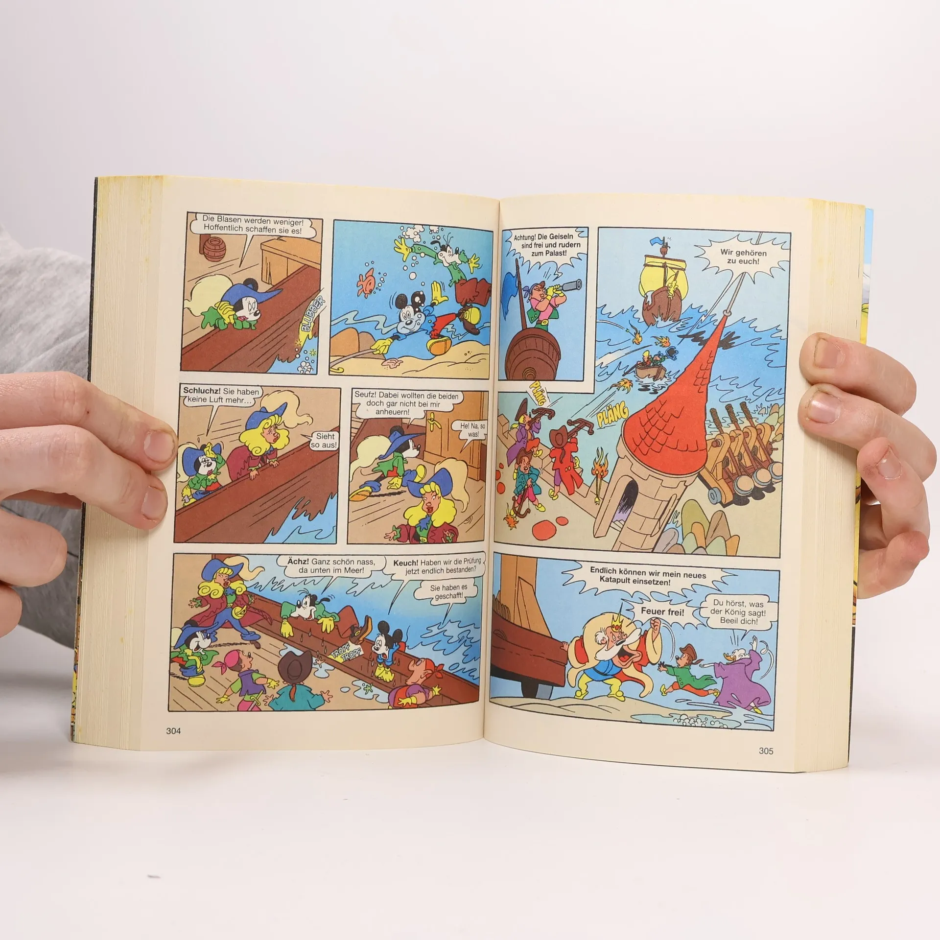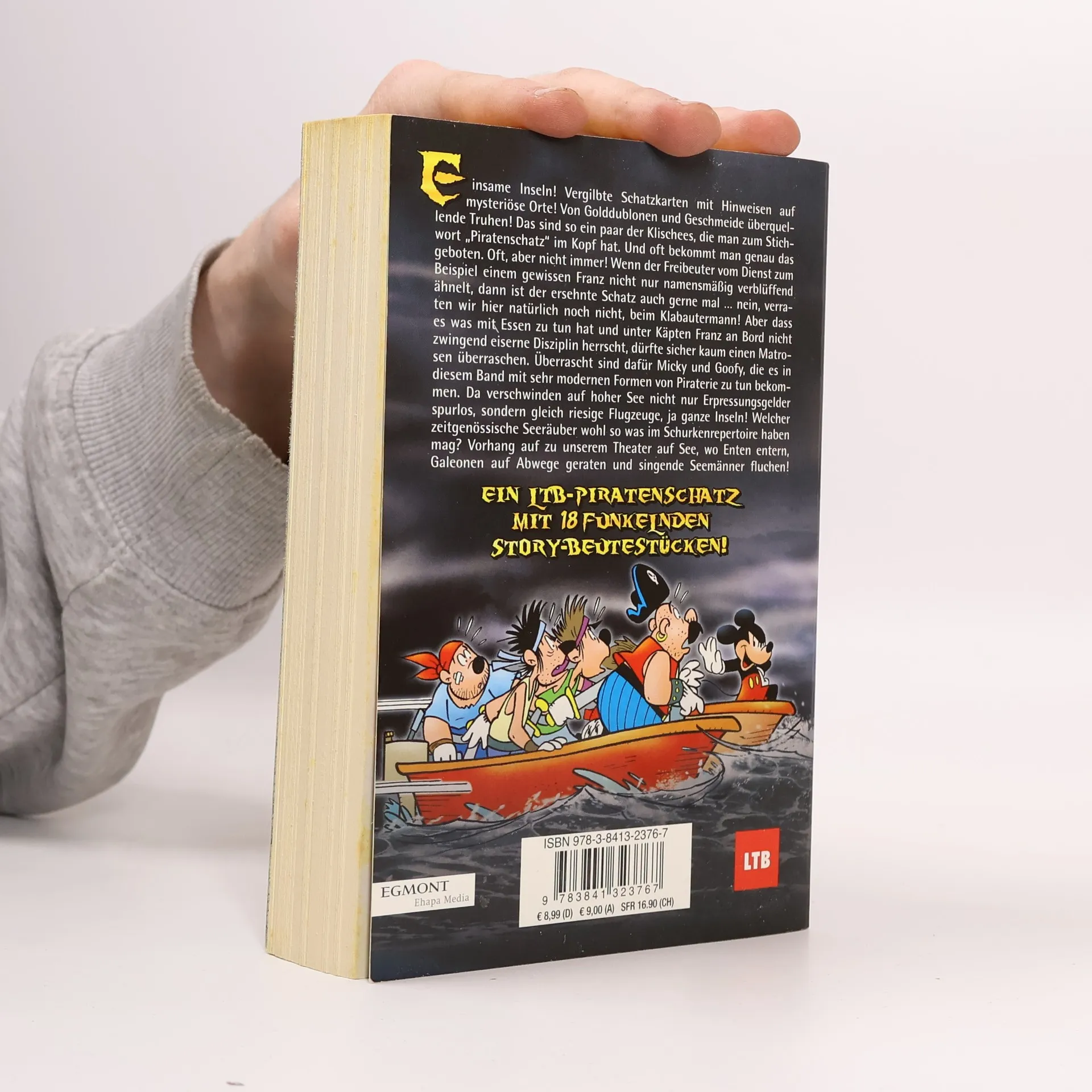 Beim Stichwort „Piratenschatz“ geraten sogar gestandene Seemänner ins Träumen von vergilbten Schatzkarten und vergessenen Truhen voller Golddublonen und funkelndem Geschmeide. Für die Verheißung von Ruhm und Reichtum nehmen sie sogar die verhängnisvollen Gefahren der hohen See auf sich, um sich auf den Weg zu einsamen Inseln und mysteriösen Orten zu machen. Soweit zumindest das Klischee. Wenn es sich beim Freibeuter vom Dienst allerdings um einen gewissen Franz handelt, darf der ersehnte Schatz auch gerne mal aus leckeren Schleckereien bestehen. Und überhaupt laufen die Dinge unter Käpten Franz etwas anders, als es der übliche Seemannsgarn vermuten lässt. Unterdessen bekommen es Micky und Goofy mit den modernen Formen der Piraterie zu tun, denn es verschwinden nicht nur Flugzeuge, sondern gleich ganze Inseln spurlos in den Weiten der Ozeane. Eins ist sicher, dieses LTB ist nichts für Landratten!