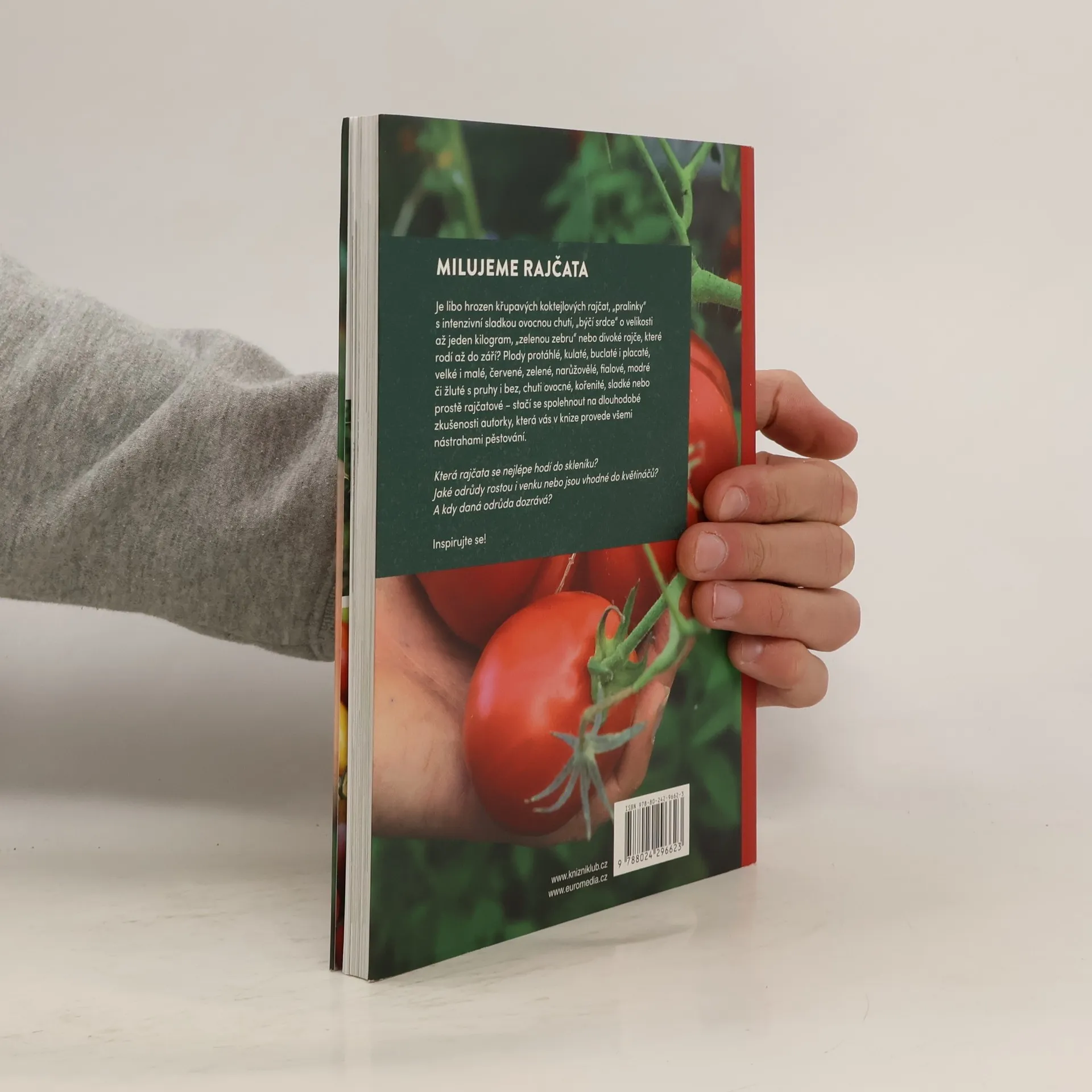 Je libo hrozen křupavých koktejlových rajčat, „pralinky“ s intenzivní sladkou ovocnou chutí, „býčí srdce“ o velikosti až jeden kilogram, „zelenou zebru“ nebo divoké rajče, které rodí až do září? Plody protáhlé, kulaté, buclaté i placaté, velké i malé, červené, zelené, narůžovělé, fialové, modré či žluté s pruhy i bez, chuti ovocné, kořenité, sladké nebo prostě rajčatové – stačí se spolehnout na dlouhodobé zkušenosti autorky, která vás v knize provede všemi nástrahami pěstování.