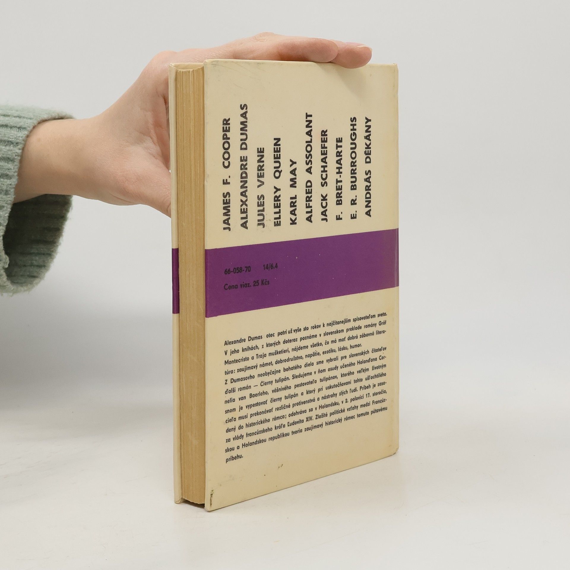 Historický román, v ktorom môžete sledovať osudy učeného Holanďana Cornelia van Baerleho, vášnivého pestovateľa tulipánov, ktorého veľkým životným snom je vypestovať čierny tulipán a ktorý pri uskutočňovaní tohto ušľachtilého cieľa musí zdolávať rozličné protivenstvá a nástrahyzlých ľudí - príbeh je zasadený do Holandska, do 2. polovice 17. storočia, za vlády francúzskeho kráľa Ľudovíta XIV....
