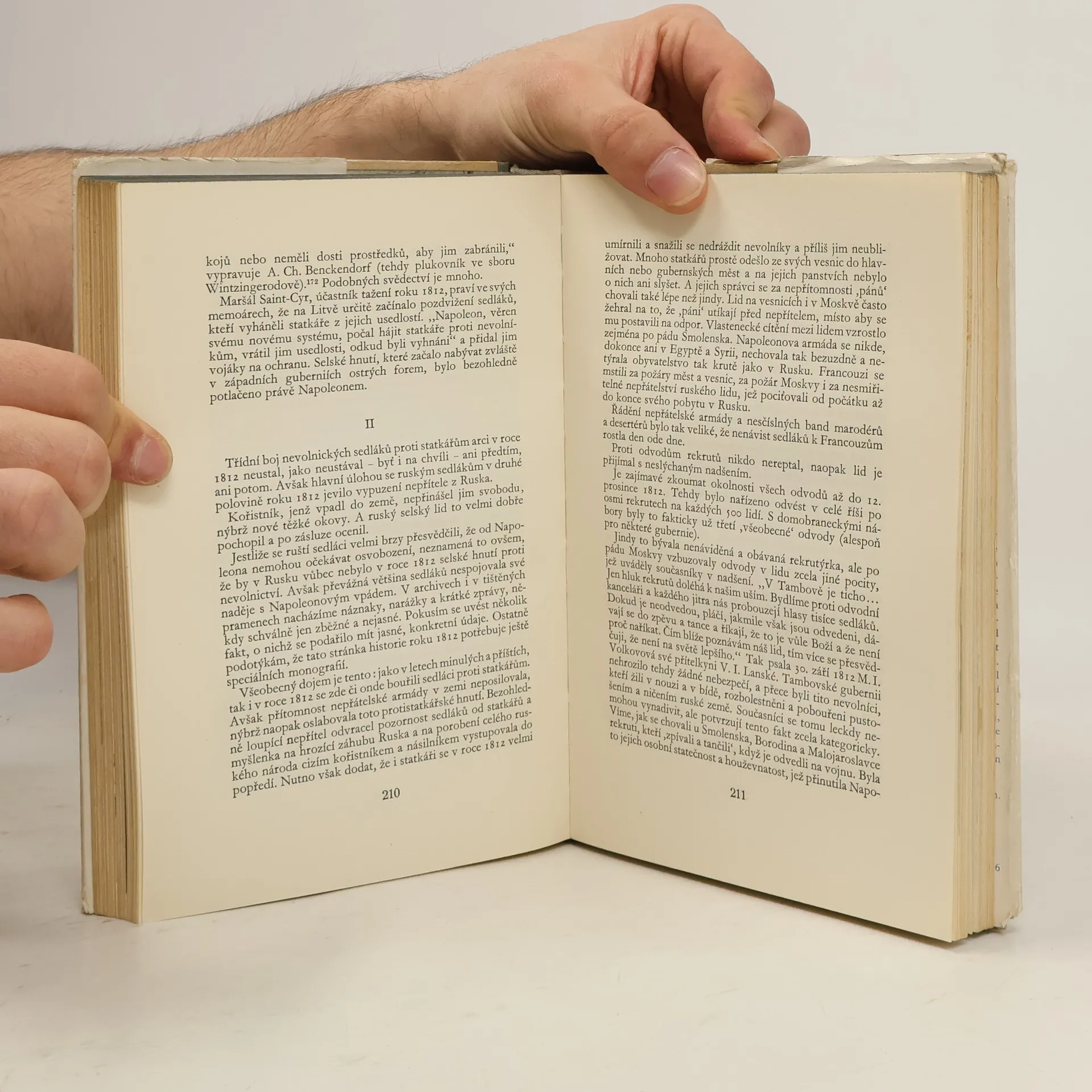 3. doplněné vydání. Úmyslem autora je dát "sovětské veřejnosti krátké, zhuštěné, všeobecné dílo o roce 1812, formou přístupné, avšak založené výhradně na původních pramenech, nikoli na literatuře (jak naší, tak i cizí)" ... Autor se tu nezabývá všemi otázkami spjatými s r. 1812, ale chce "postavit čtenáře tváří v tvář pramenům a dát mu do rukou spis sice neúplný a záměrně stručný, avšak vědecký, opřený veskrze o samostatné bádání." J. Tarle chce "především zhuštěnou formou vylíčit vývoj válečných událostí, za druhé zmínit se stručně o tom, jak se tyto události odrážely ve vládě, ve šlechtě, v selském stavu a ve vnitřní politice vůbec, a za třetí zhodnotit v závěru význam roku 1812 ve světové historii."