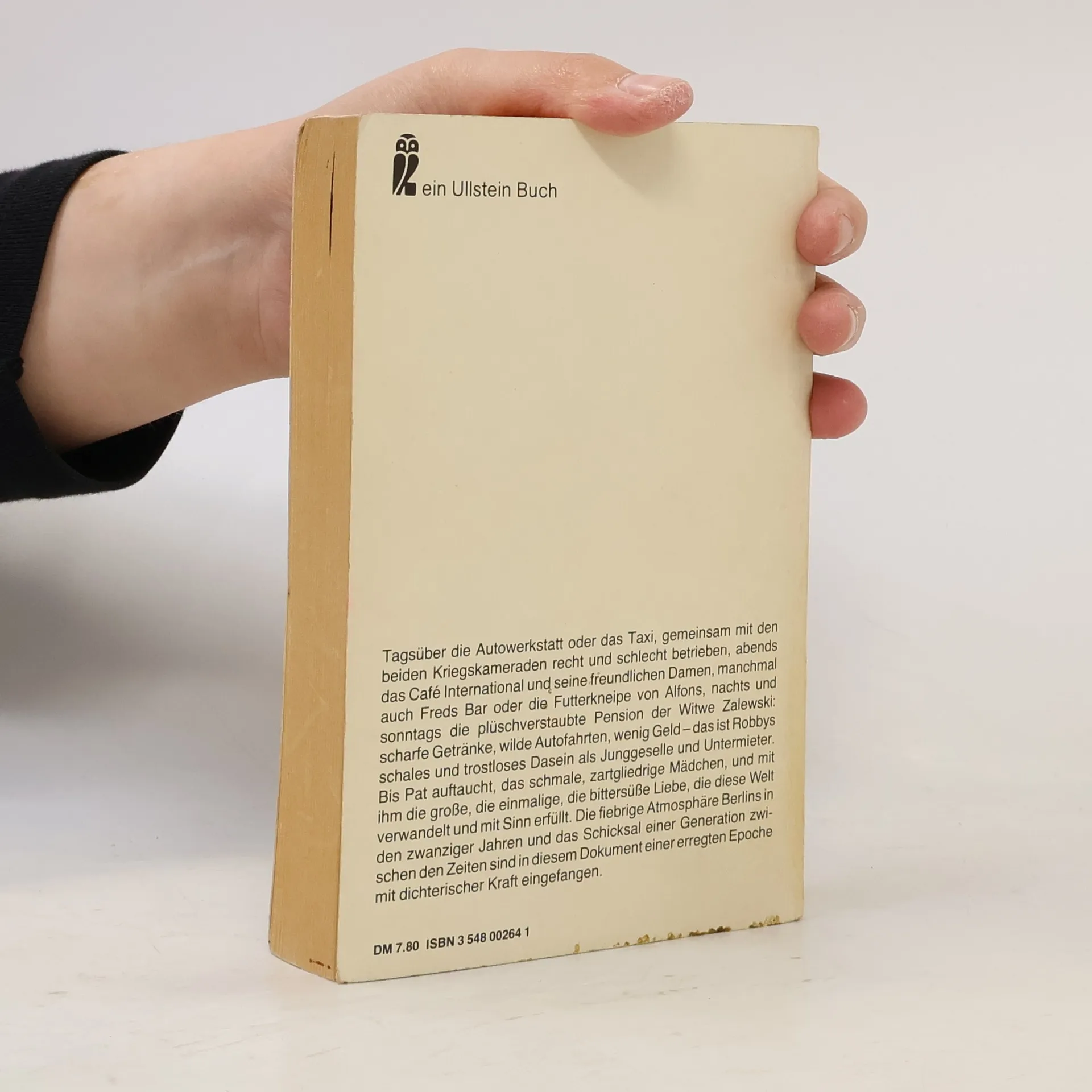 Tagsüber die Autowerkstatt, gemeinsam mit den beiden Kriegskameraden recht und schlecht betrieben, abends scharfe Getränke, wilde Autofahrten, wenig Geld - das ist Robbys Dasein, bis Pat kommt und mit ihr die Liebe. Der Roman spielt in der fiebrigen Atmosphäre Berlins in den zwanziger Jahren.