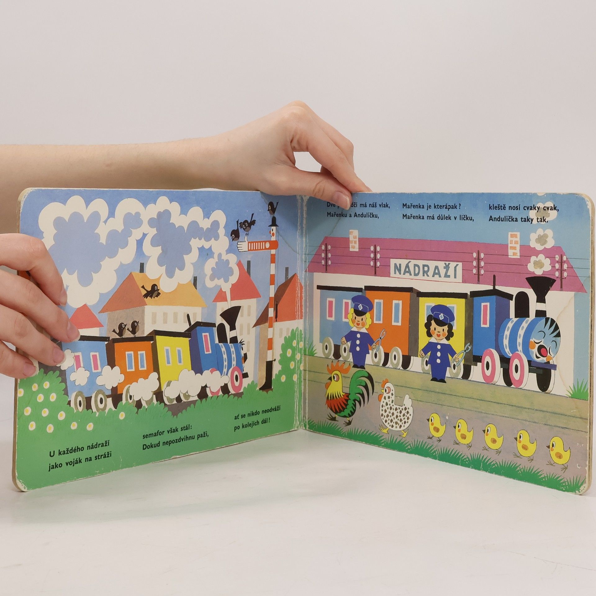 Oblíbené leporelo s verši, klasika české poezie pro děti. Veselá mašinka provází malé čtenáře po nádražích, vypravuje o průvodčích a strojvedoucím, o semaforu a výhybkách, o kolejnicích a železném mostu i o zaslouženém odpočinku po dlouhé cestě. Pro děti od dvou let.