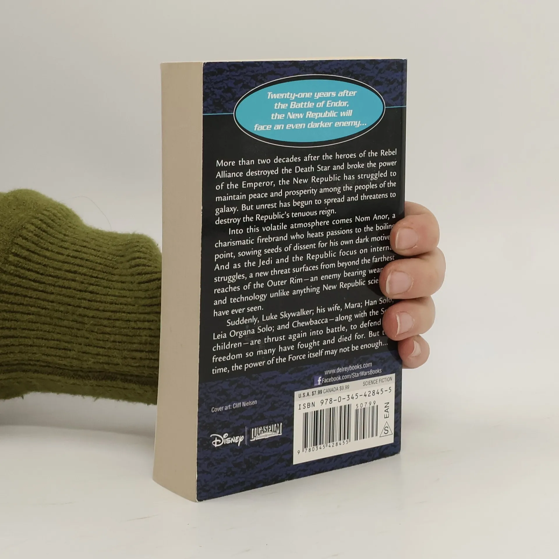 Twenty-one years after the Battle of Endor, the New Republic will face an even darker enemy. . . . More than two decades after the heroes of the Rebel Alliance destroyed the Death Star and broke the power of the Emperor, the New Republic has struggled to maintain peace and prosperity among the peoples of the galaxy. But unrest has begun to spread and threatens to destroy the Republic's tenuous reign. Into this volatile atmosphere comes Nom Anor, a charismatic firebrand who heats passions to the boiling point, sowing seeds of dissent for his own dark motives. And as the Jedi and the Republic focus on internal struggles, a new threat surfaces from beyond the farthest reaches of the Outer Rim--an enemy bearing weapons and technology unlike anything New Republic scientists have ever seen. Suddenly, Luke Skywalker; his wife, Mara; Han Solo; Leia Organa Solo; and Chewbacca--along with the Solo children--are thrust again into battle, to defend the freedom so many have fought and died for. But this time, the power of the Force itself may not be enough. . . . schovat popis