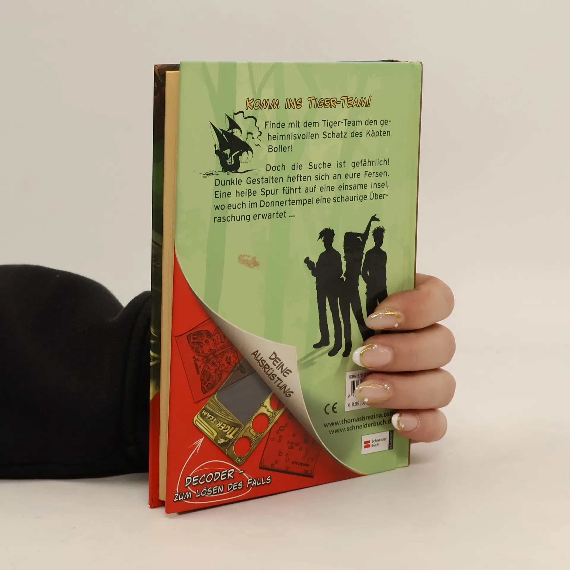 Das 1. Abenteuer des Tiger-Teams. Bei einer Versteigerung fällt dem Tiger-Team die geheimnisvolle Schatzkarte des Käpten Boller in die Hände. Biggi, Luk und Patrick, die keinem Geheimnis widerstehen können, machen sich auf die Suche. Eine heiße Spur führt die drei Freunde auf eine einsame Insel zum sagenumwobenen Donnertempel. Hier erwartet sie eine schaurige Überraschung.