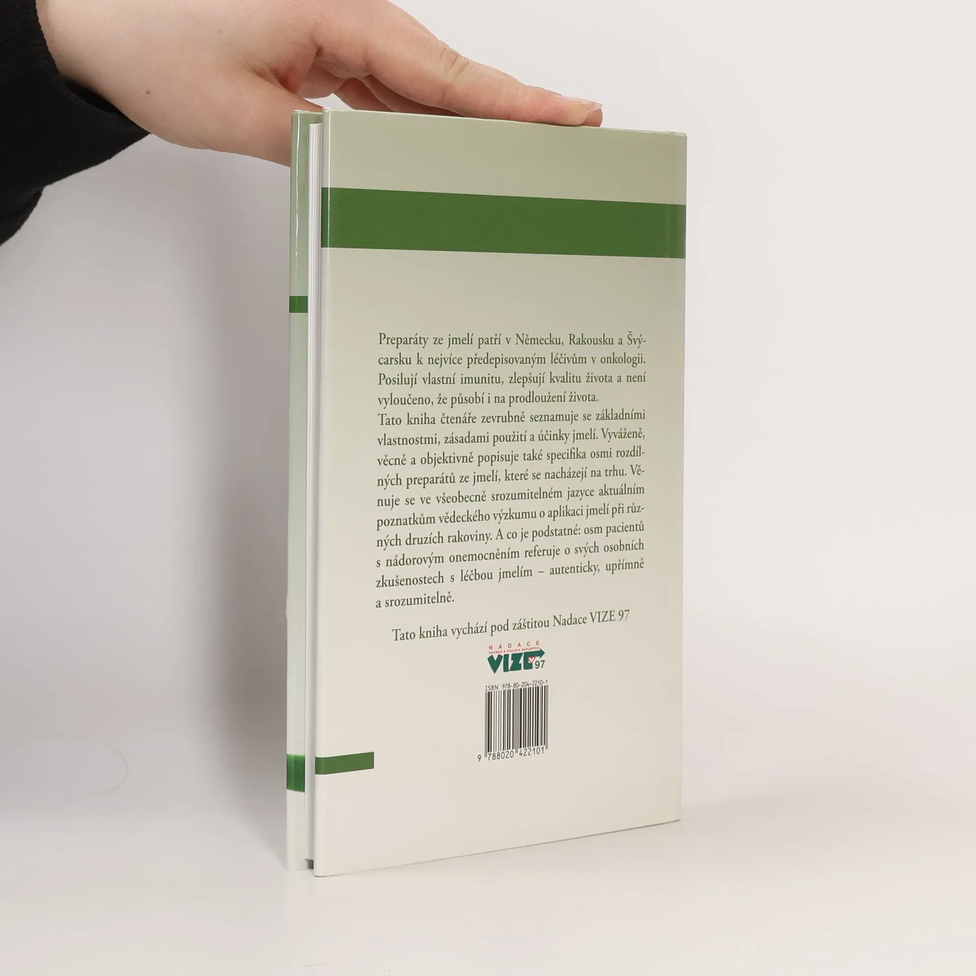 Preparáty ze jmelí patří v Německu, Rakousku a Švýcarsku k nejvíce předepisovaným léčivům v onkologii. Posilují vlastní imunitu, zlepšují kvalitu života a není vyloučeno, že působí i na prodloužení života. Tato kniha čtenáře zevrubně seznamuje se základními vlastnostmi, zásadami použití a účinky jmelí. Vyváženě, věcně a objektivně popisuje také specifika osmi rozdílných preparátů ze jmelí, které se nacházejí na trhu. Věnuje se ve všeobecně srozumitelnéhom jazyce aktuálním poznatkům vědeckého výzkumu o aplikaci jmelí při různých druzích rakoviny. A co je podstatné: osm pacientů s nádorovým onemocněním referuje o svých osobních zkušenostech s léčbou jmelím - autenticky, upřímně a srozumitelně.