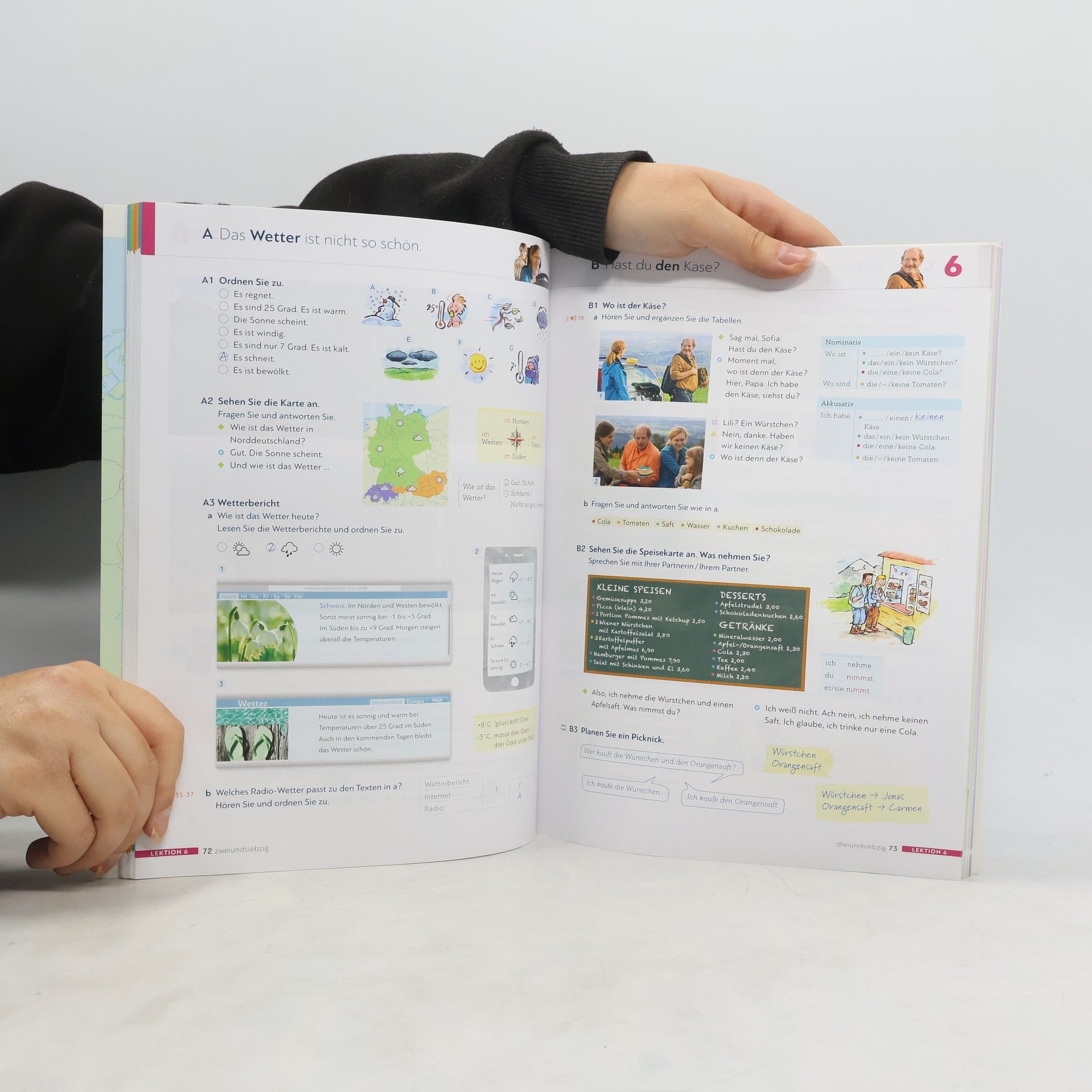 Zielniveau A1.1 Teilband A1.1 Kursbuchteil - alle Lektionen folgen einem klaren Aufbau für hohe Lerntransparenz - neue Foto-Hörgeschichten als Einstieg in jede Lektion - interessante Texte und vielfältige Landeskunde - induktive Grammatik fördert Bewusstmachung und Verständnis - Vorbereitung auf den Berufsalltag durch verstärkten Berufsbezug - Stärkung der Lernerautonomie durch eine Doppelseite zu Grammatik und Redemitteln mit Übungen und Lernhilfen am Ende jeder Lektion - Transparenz durch Lernziele mit der Möglichkeit zur Selbsteinschätzung - flexible Ergänzung der Lektionsinhalte durch die „Zwischendurch mal …-Seiten“ - alle Audiodateien und Filme zum Kursbuch über mobile Geräte (Smartphone, Tablet-PC) abrufbar mit kostenloser App Arbeitsbuchteil - Übungen und Wiederholungsübungen in verschiedenen Schwierigkeitsstufen zur Binnendifferenzierung - ein systematisch aufgebautes Schreibtraining - Wortschatztraining für einen gezielten Wortschatzerwerb - ein ausführliches Phonetikprogramm - Aufgaben zum Mehrsprachigkeitsansatz - Prüfungsaufgaben - Lernertests mit Selbstauswertung und weiterführendem Trainingsprogramm im Lehrwerkservice - integrierte Fokus-Seiten bieten zahlreiche zusätzliche Materialien zu den Themen Beruf und Alltag. - Lernwortschatz-Seiten am Ende des Buches mit Illustrationen und Beispielsätzen, Schreibzeilen und Lerntipps - eine systematische Grammatik-Übersicht im Anhang