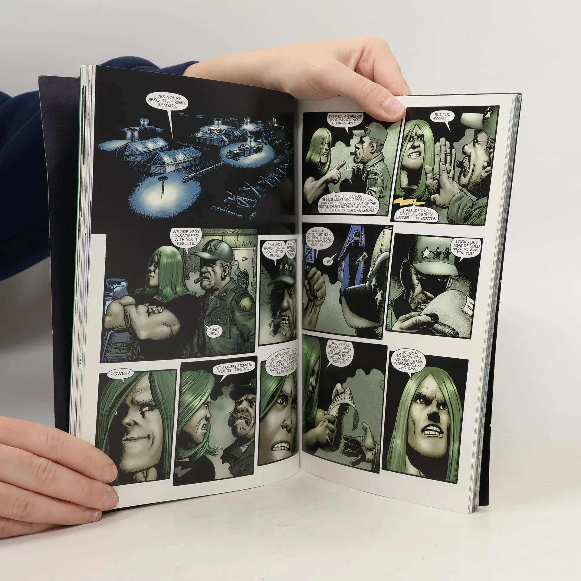 This book consists of two different Hulk tales by two different writer/artist teams; 'Startling Stories : Banner' (four-issue mini-series, 2001) 'Hulk: The End' (one-shot comic book, 2002) The first is written by Brian Azzarello (famous for the 100 Bullets' series and Joker'). The story has Bruce Banner/The Hulk on the run, persued by Doc Samson and General Ross (along with the military). There's a fair bit of action as well as exploration of the despair of Bruce Banner, unable to control or defeat the Hulk' side of his personality. It's quite a good story but it's fairly short and I wasn't sure the artwork suited as it reminded me of the style of Robert Crumb and I didn't like the facial features they gave the Hulk. The second part of the book is by author Peter David and artist Richard Corben. This is a story from The End' line of stories in which the final days of a Marvel character is explored - in this instance it is, of course, The Hulk. The story is set 200 years in the future when humanity has been destroyed by nuclear war and only the Hulk roams the land. This story also explores the struggle between the two sides of Banner and the Hulk but is a bit deeper and darker, and is helped by the more realistic artwork.