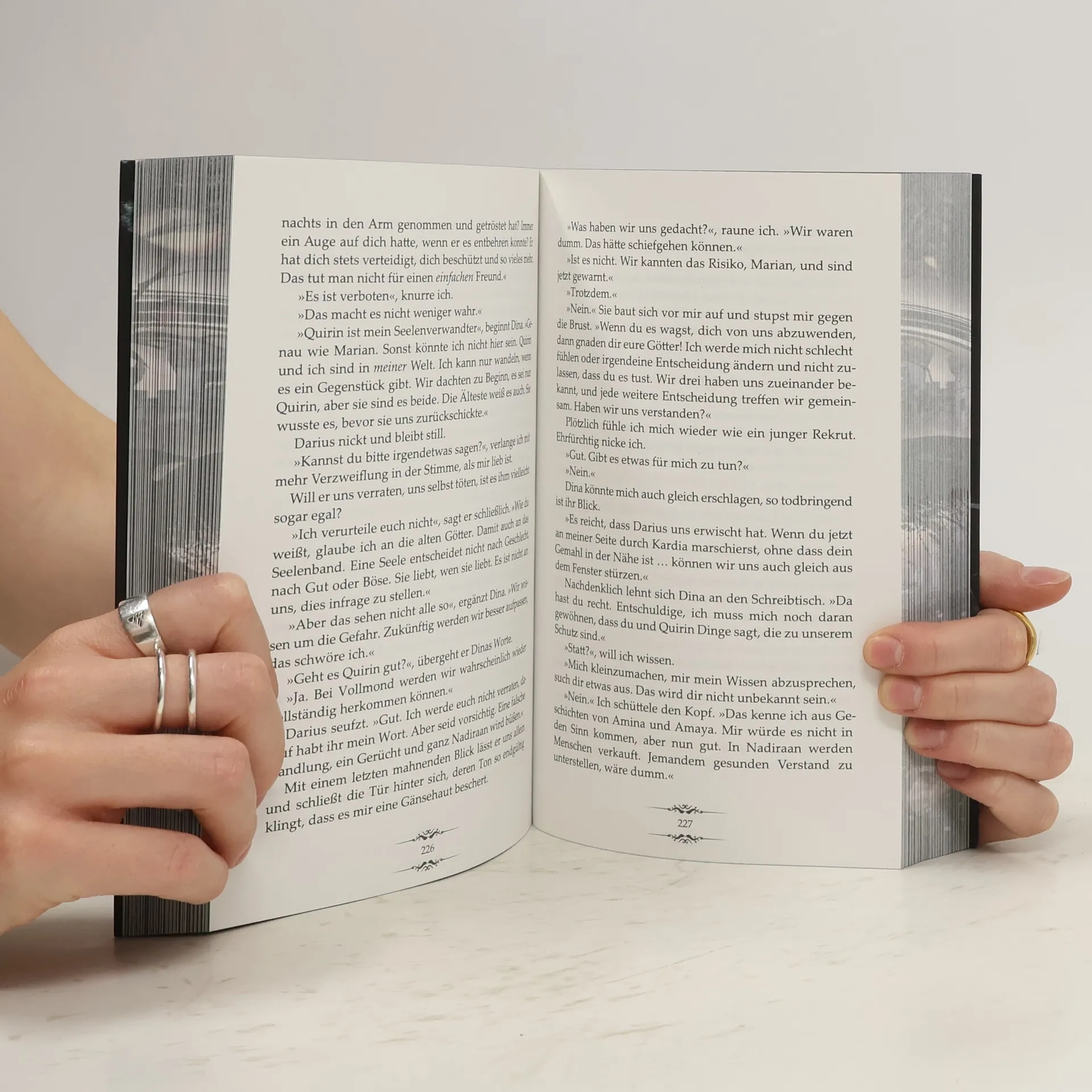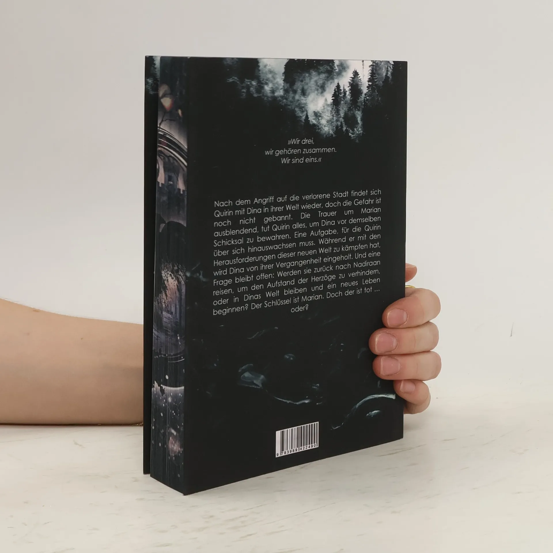 »Wir drei, wir gehören zusammen. Wir sind eins.« Nach dem Angriff auf die verlorene Stadt findet sich Quirin mit Dina in ihrer Welt wieder, doch die Gefahr ist noch nicht gebannt. Die Trauer um Marian ausblendend, tut Quirin alles, um Dina vor demselben Schicksal zu bewahren. Eine Aufgabe, für die Quirin über sich hinauswachsen muss. Während er mit den Herausforderungen dieser neuen Welt zu kämpfen hat, wird Dina von ihrer Vergangenheit eingeholt. Und eine Frage bleibt offen: Werden sie zurück nach Nadiraan reisen, um den Aufstand der Herzöge zu verhindern, oder in Dinas Welt bleiben und ein neues Leben beginnen? Der Schlüssel ist Marian. Doch der ist tot … oder?