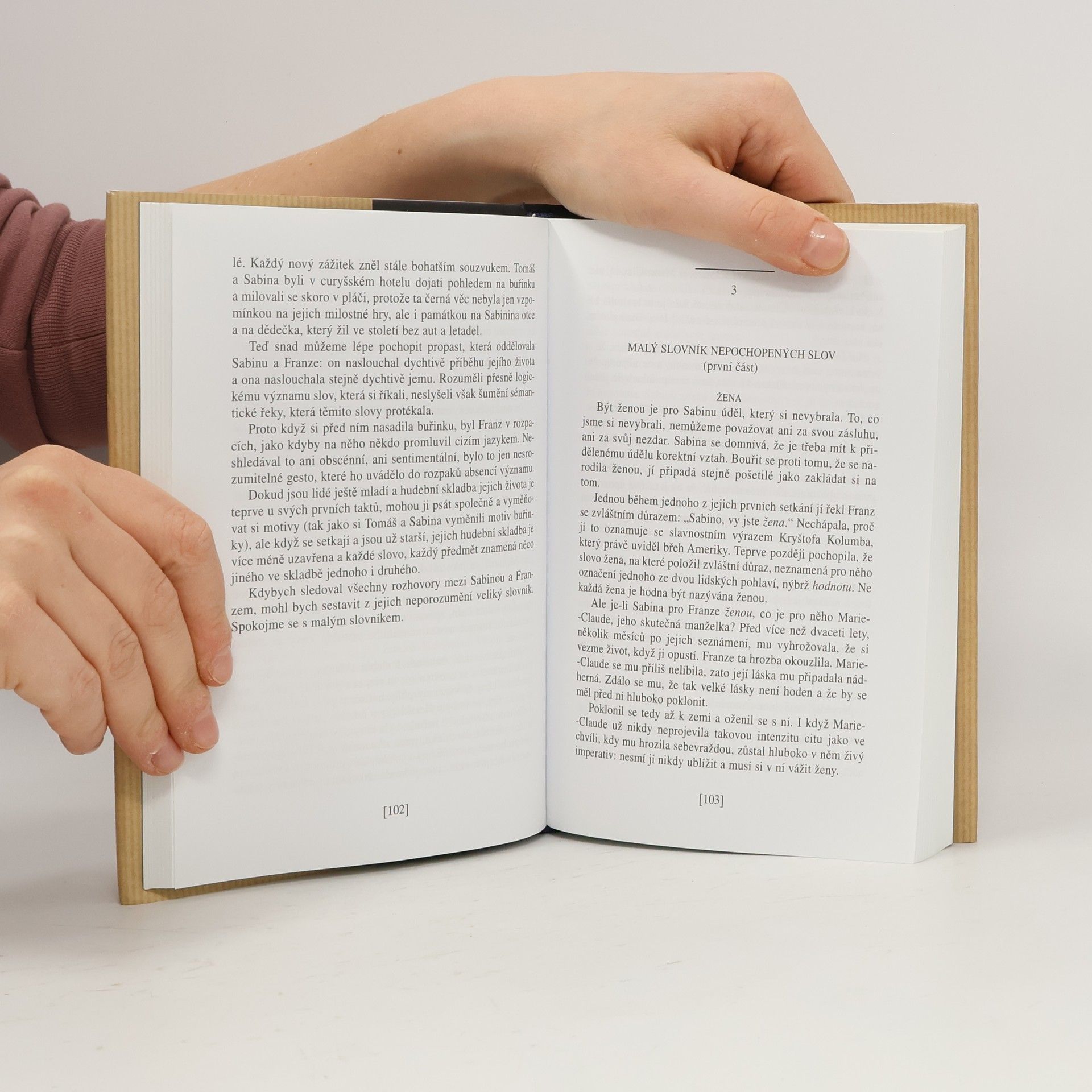 Slavný román Milana Kundery vychází poprvé v České republice; s obvyklou Poznámkou autora a s doslovem Květoslava Chvatíka. Poprvé vyšel ve francouzském překladu v roce 1984 v Paříži u Gallimarda, v roce 1985 česky v Kanadě v nakladatelství Sixty-Eight Publishers. Vyprávění o lásce, o Tereze a Tomášovi, o Sabině a Franzovi, o lehkosti a tíze bytí... „Po čtyřech letech strávených v Ženevě ubytovala se Sabina v Paříži a nemohla se vzpamatovat z melancholie. Kdyby se jí někdo ze ptal, co se jí stalo, nenašla by pro to slov. Životní drama se dá vždycky vyjádřit metaforou tíže. Říkáme, že na člověka dopadlo nějaké břemeno. Člověk to břemeno unese nebo neunese, padá pod ním, zápasí s ním, prohrává nebo vítězí. Ale co se vlastně stalo Sabině? Nic. Opustila jednoho muže, protože ho chtěla opustit. Pronásledoval ji pak? Mstil se jí? Ne. Její drama nebylo dramatem tíhy, ale lehkosti. Na Sabinu dopadlo nikoli břemeno, ale nesnesitelná lehkost bytí.“