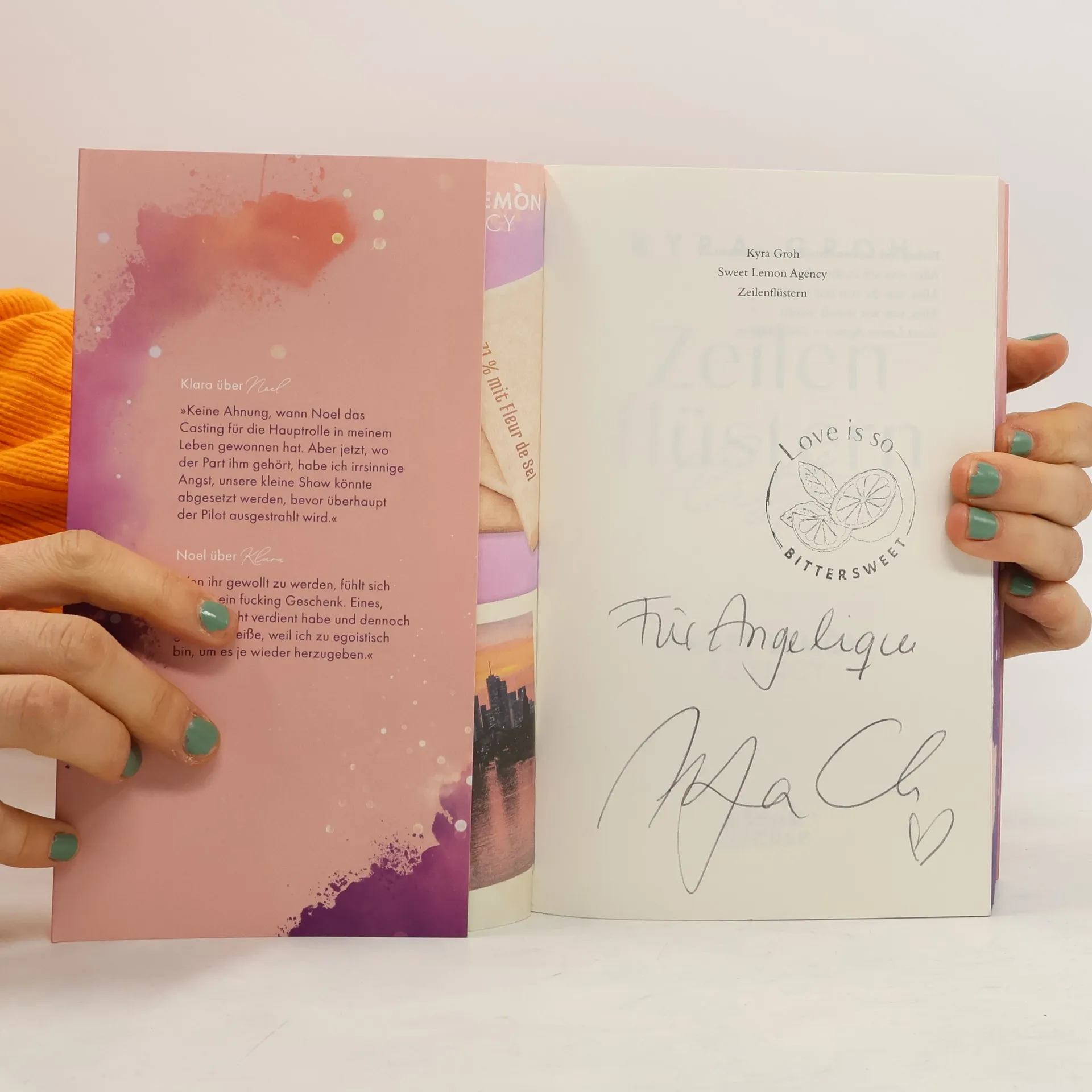 Das Buch ist bei deiner Buchhandlung vor Ort und bei vielen Online-Buchshops erhältlich! Mit edlem Farbschnitt - nur in der limitierten Erstauflage Seine Stimme bedeutet ihr alles – bis sie ihm begegnet Jede Nacht lässt sich Klara von Noel Carter in den Schlaf flüstern. Dabei kennt sie nur seine Stimme. Alles andere versteckt der Hörbuchsprecher hinter einem Pseudonym. Bis ihr erster Job bei der Sweet Lemon Agency Klara in ein Tonstudio führt, in dem ausgerechnet Noel auf sie wartet. Er soll ihre Werbetexte für eine sinnliche neue Kampagne einsprechen – und hasst jedes Wort davon. Denn für den gescheiterten Schauspieler sind die Aufnahmen ein weiterer Beweis dafür, dass er von niemandem ernstgenommen wird. Von niemandem außer Klara, die ihm zeigt, wie viel zwischen den Zeilen steht. Auftakt einer neuen New Adult-Reihe in der deutschen Werbebranche. Autorin Kyra Groh verwebt ihre Leidenschaft für Hörbücher in ihrer neuen New-Adult-Reihe rund um die Sweet Lemon Agency: She fell first but he fell harder ist das Motto, wenn CODA (Child of Deaf Adults) Klara und Hörbuchsprecher Noel für eine spicy Werbekampagne aufeinandertreffen.