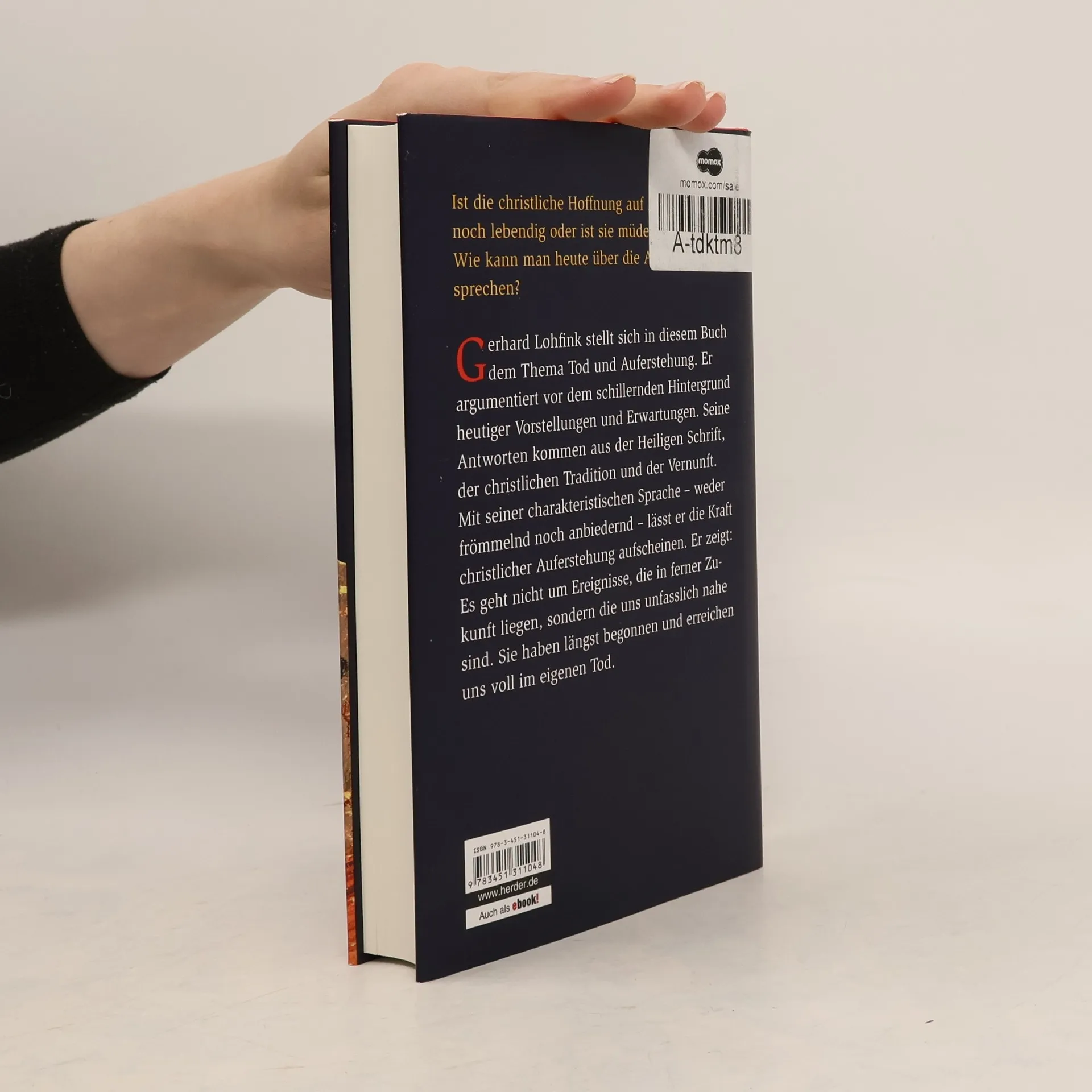 Ist die christliche Hoffnung auf Auferstehung noch lebendig oder müde geworden? Gerhard Lohfink widmet sich in diesem Buch dem Thema Tod und Auferstehung und untersucht, wie man heute darüber sprechen kann. Er argumentiert vor dem Hintergrund zeitgenössischer Vorstellungen und Erwartungen und stützt sich auf die Heilige Schrift, die christliche Tradition und die Vernunft. Mit seiner charakteristischen Sprache, die weder frömmelnd noch anbiedernd ist, bringt er die Kraft der christlichen Auferstehung zum Vorschein. Lohfink verdeutlicht, dass es nicht um weit entfernte Ereignisse geht, sondern um etwas, das uns unmittelbar betrifft und bereits begonnen hat – es erreicht uns im eigenen Tod. Das Nachdenken über dieses Thema hat ihn erneut die befreiende Kraft des christlichen Glaubens an die Auferstehung der Toten erkennen lassen. Wer in diesem Glauben verwurzelt ist, kann ohne Sorgen im biblischen Heute leben, da jede Lebensstunde Bedeutung und Hoffnung hat. Zudem kann er sich für den Aufbau einer gerechten Gesellschaft einsetzen, da die Welt der Auferstehung die von Gott geschenkte Endgestalt der Welt ist, für die wir hier kämpfen.