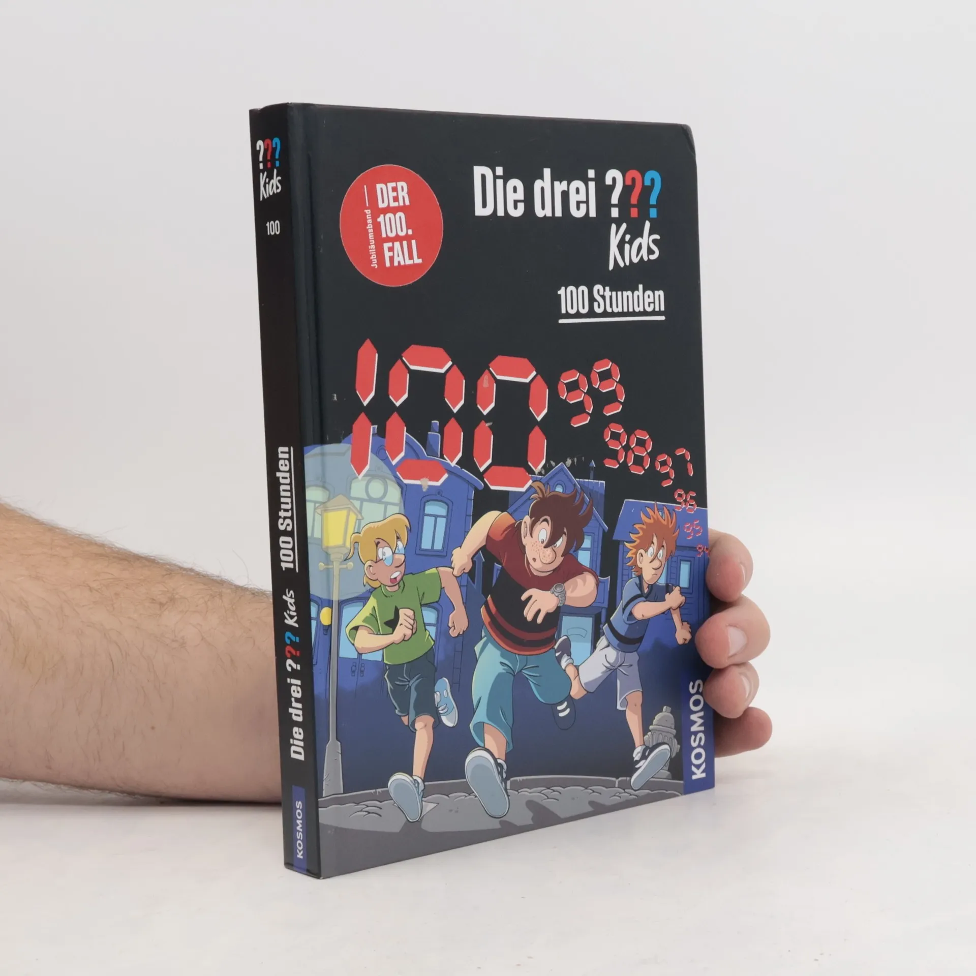 Kommissar Reynolds wundert sich: Wer hat den Erpresserbrief an die drei ??? geschrieben? Justus, Peter und Bob haben genau 100 Stunden Zeit, um die Forderungen des Erpressers zu erfüllen! In der Geschichte wird der Stunden-Countdown runtergezählt – das sorgt für Tempo. Es gibt viele Aufgaben und Rätsel zu lösen. Bei ihren Ermittlungen kommen die Detektive an bekannten Orten in Rocky Beach vorbei. Sie treffen Onkel Titus, Tante Mathilda, Skinny Norris und viele alte Bekannte. Dann führt die Spur die Detektive ins Gefängnis. Werden Justus, Peter und Bob den Bösewicht in der letzten Minute noch schnappen? Der 100. Band der Reihe „Die drei ??? Kids".