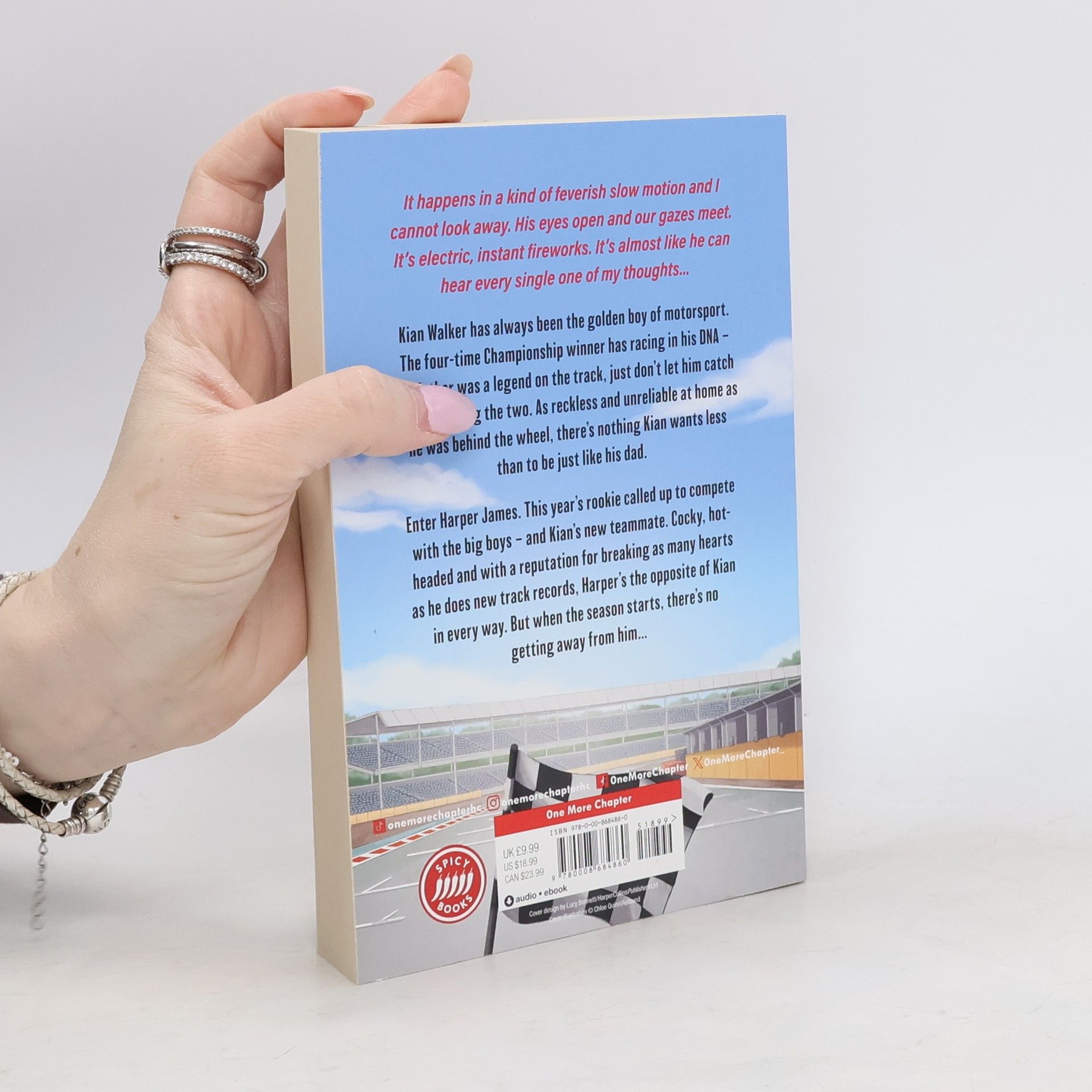 Red, White and Royal Blue meets Formula 1! Kian Walker has always been the golden boy of motor sport. The four-time Championship winner has racing in his DNA - his father was a legend on the track, just don't let him catch you comparing the two. As reckless and unreliable at home as he was behind the wheel, there's nothing Kian wants less than to be just like his dad. Enter Harper James. This year's rookie called up to compete with the big boys - and Kian's new teammate. Cocky, hot-headed and with a reputation for breaking as many hearts as he does new track records, Harper's the opposite of Kian in every way. But when the season starts, there's no getting away from him. This might be one of the most dangerous sports in the world, so why then does Kian's heart feel safer flying around the track at 220mph than when he's anywhere near his teammate?