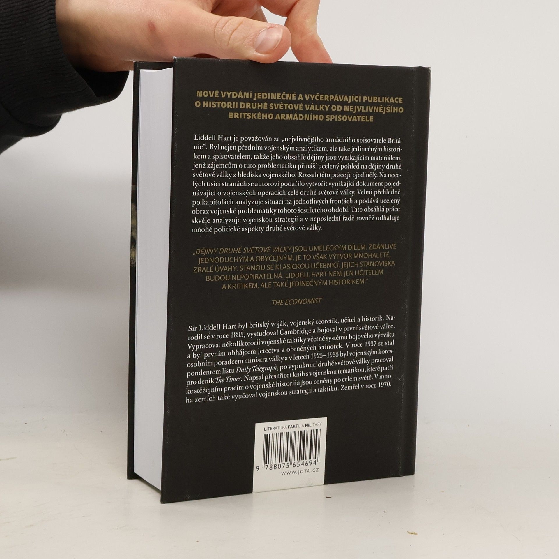Nové vydání jedinečné a vyčerpávající publikace o historii druhé světové války od nejvlivnějšího britského armádního spisovatele. Liddell Hart je považován za „nejvlivnějšího armádního spisovatele Británie“, byl nejen předním vojenským analytikem, ale také jedinečným historikem a spisovatelem, takže jeho obsáhlé dějiny jsou vynikajícím materiálem, jenž zájemcům o tuto problematiku přináší ucelený pohled na dějiny druhé světové války z hlediska vojenského. Rozsah této práce je ojedinělý. Na necelých tisíci stranách se autorovi podařilo vytvořit vynikající dokument pojednávající o vojenských operacích celé druhé světové války. Velmi přehledně po kapitolách analyzuje situaci na jednotlivých frontách a podává ucelený obraz vojenské problematiky tohoto šestiletého období. Tato obsáhlá práce skvěle analyzuje vojenskou strategii a v neposlední řadě rovněž odhaluje mnohé politické aspekty druhé světové války. Kniha je doplněna bohatou obrazovou přílohou a 55 podrobnými mapami vojenských operací.